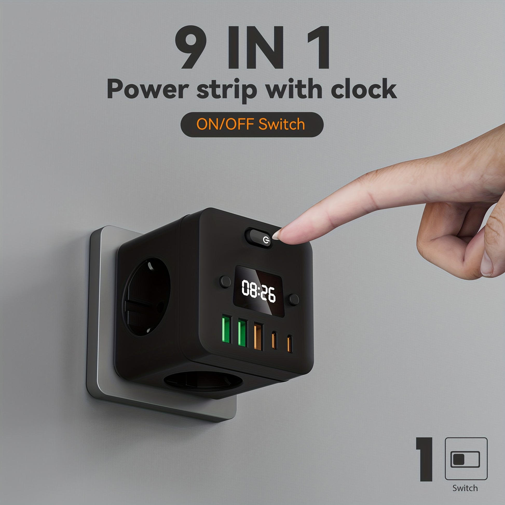 9 in 1 Power Strip with USB-C Surge Protector Wall Outlet European Standard Plug