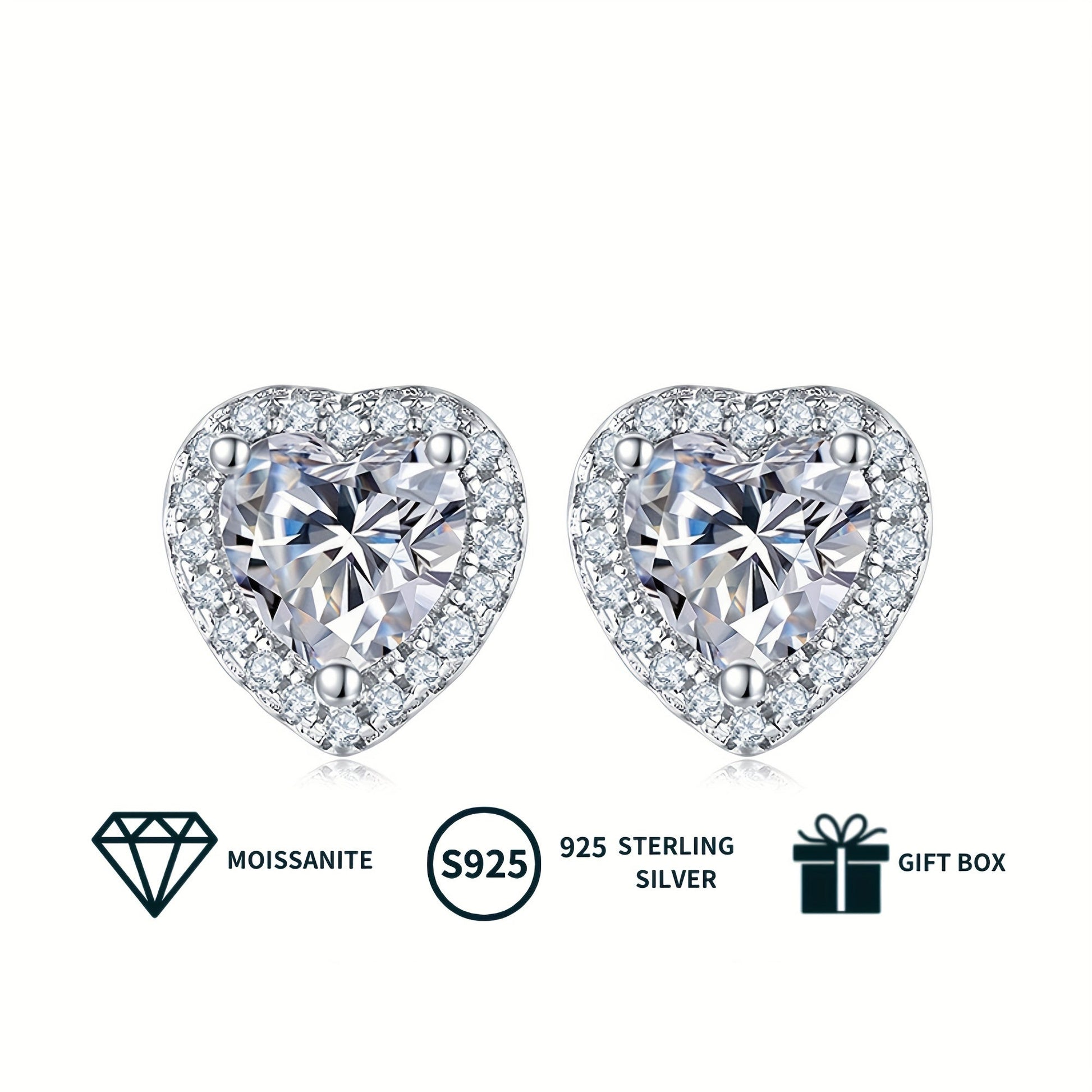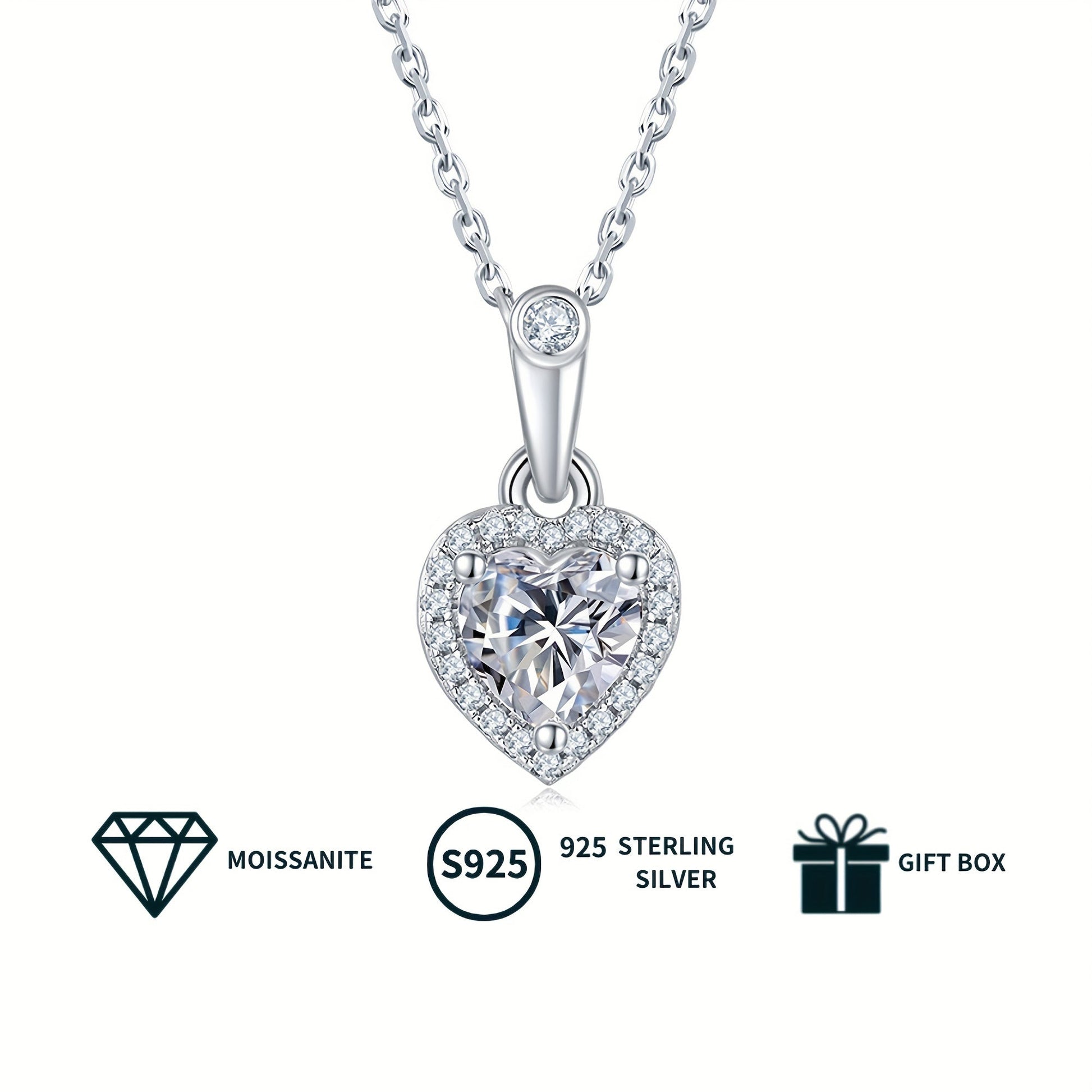 Women's Jewelry Set with Heart-Shaped Silver Earrings and Moissanite Necklace