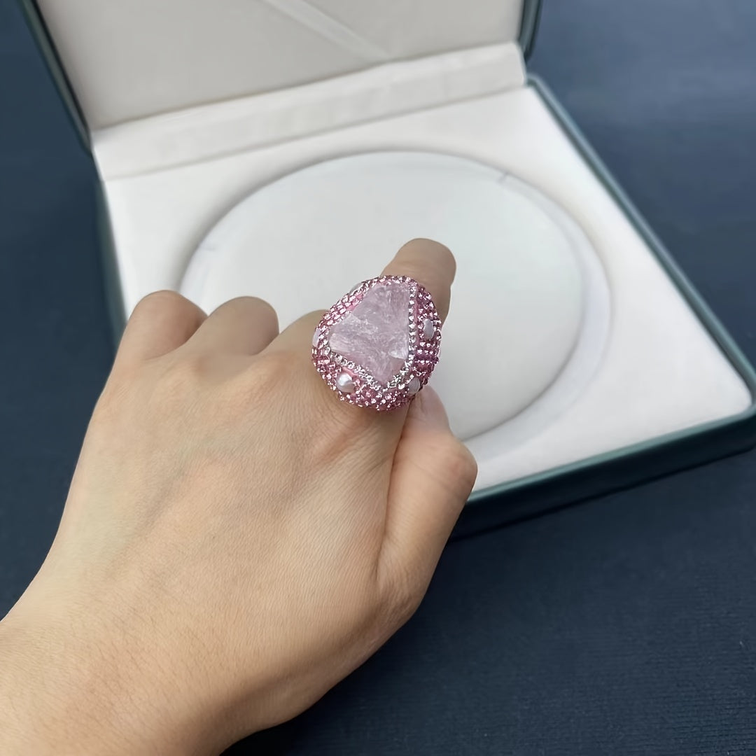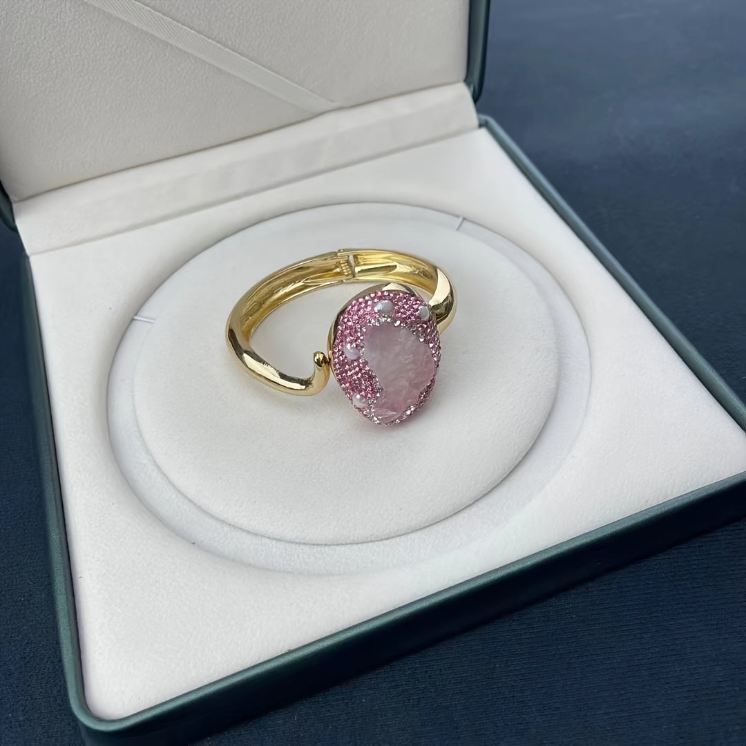 Women's Bohemian Pink Quartz Bracelet and Ring Set in 14K Gold Plated Titanium Alloy