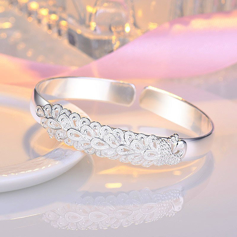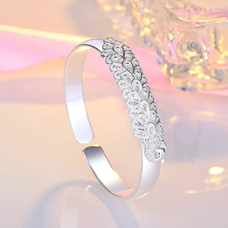 Women’s Ethnic-Inspired Bracelet with Peacock Feather Silk Opening and Phoenix Design