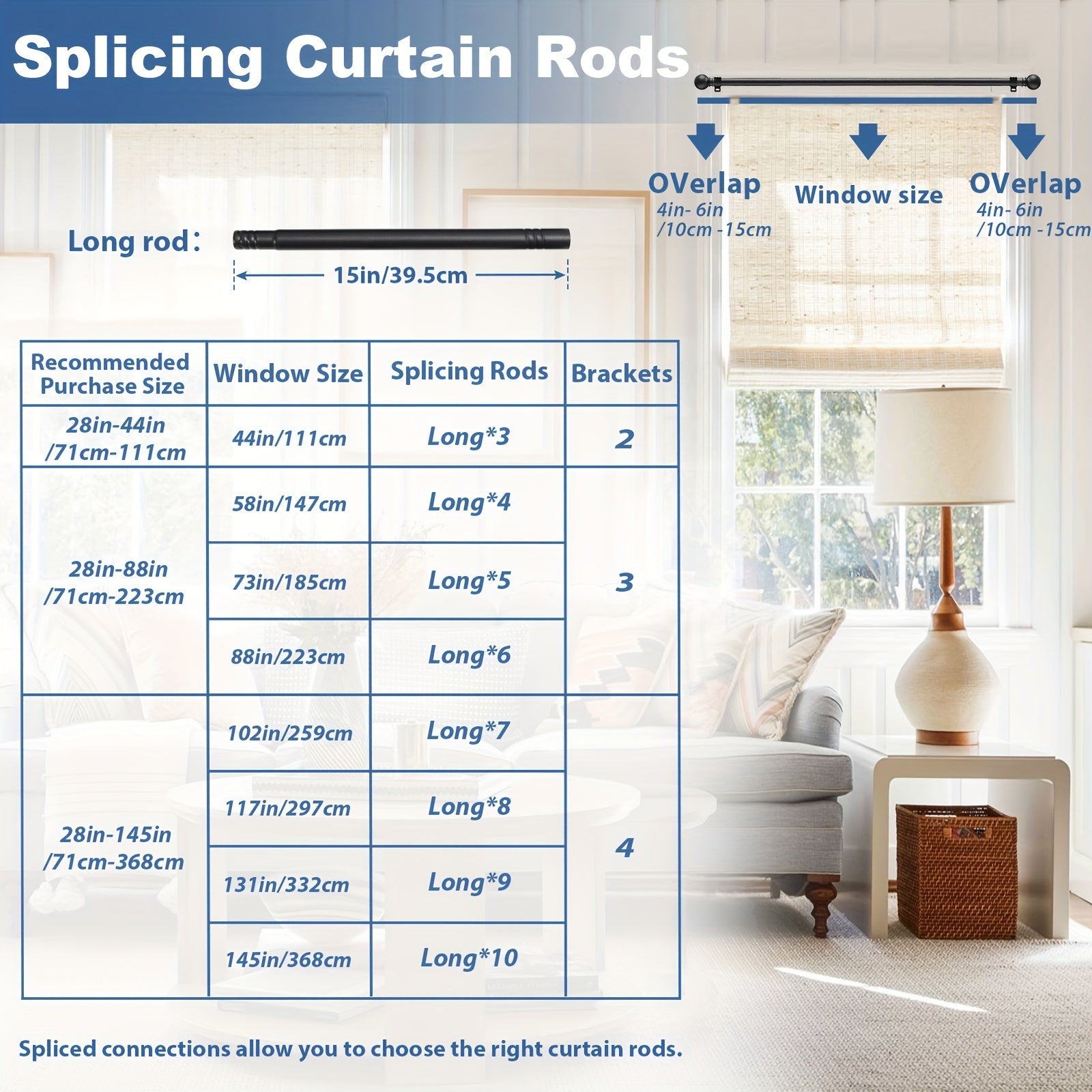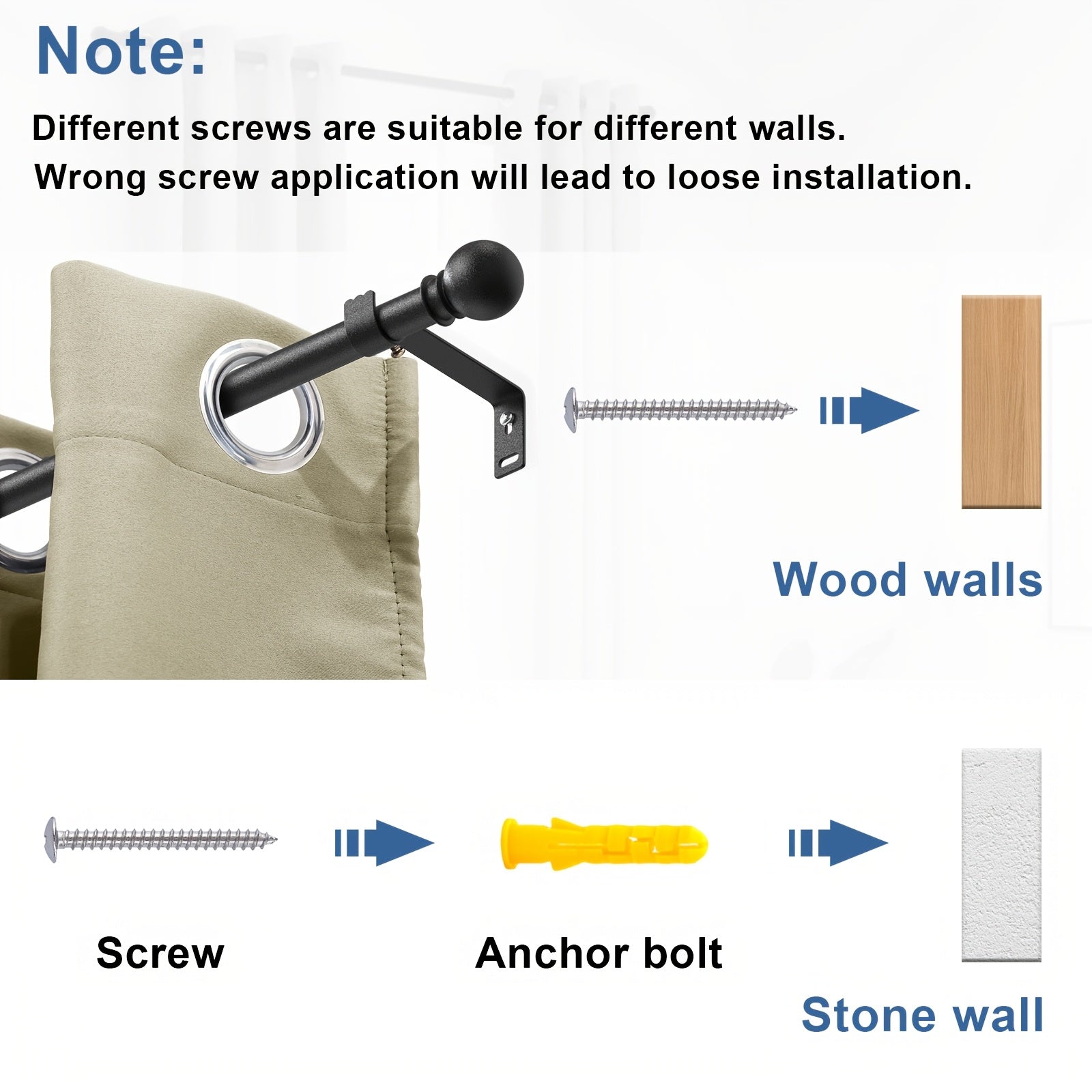 Adjustable Steel Curtain Rod Set 5/8 Inch Diameter Matte Black Modern Window Decor