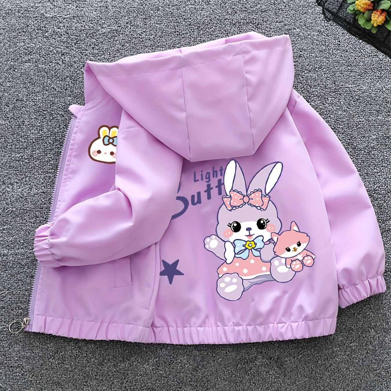 Girls' Bunny Print Zip-Up Hooded Windbreaker Jacket for Kids Spring Fall Casual Streetwear