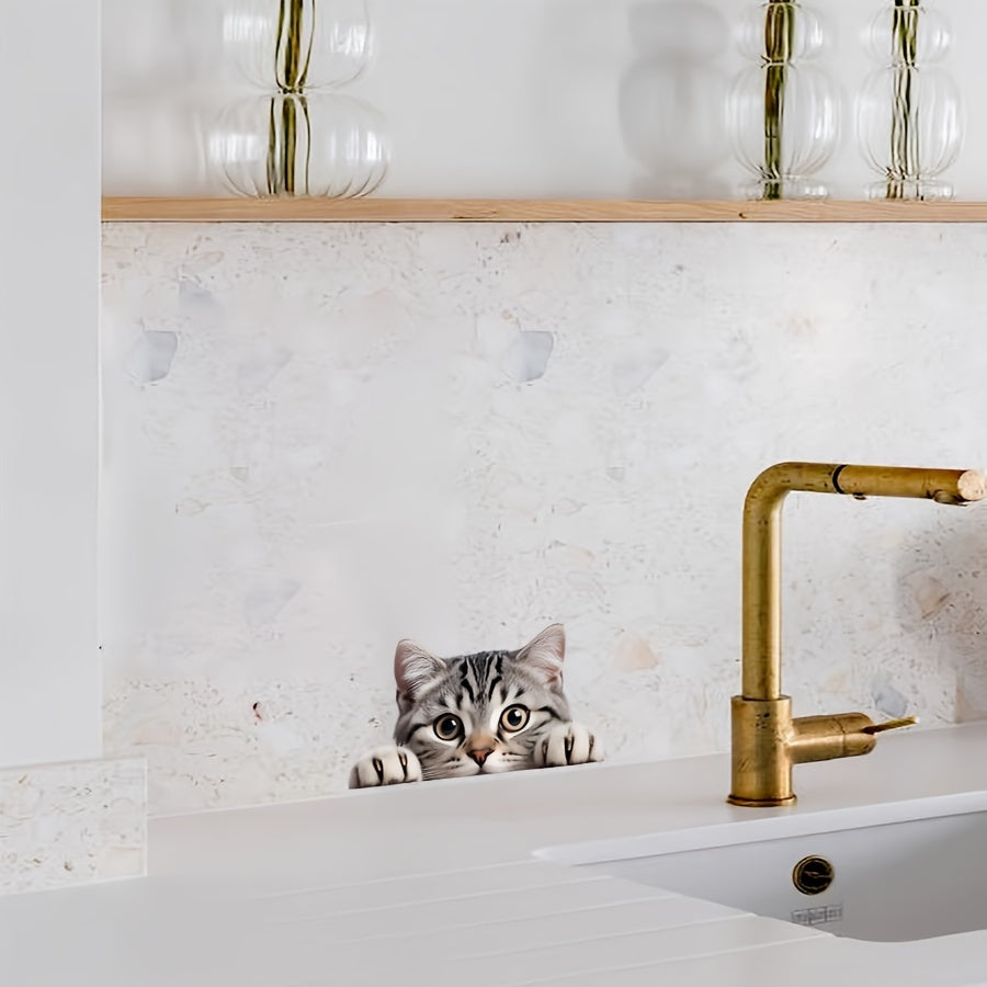 Cartoon Cat Window Decal, Easy Stick-On, 1mm Thick Paper Film for Glass Doors