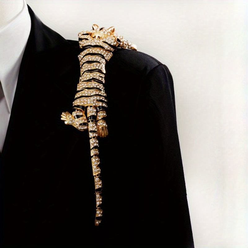 Tiger Shaped Rhinestone Brooch Pin for Sweater Chain Pendant Jewelry