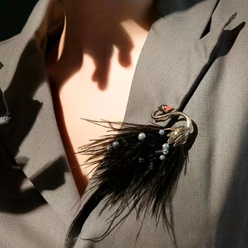 Feathered Swan Brooch Pin Vintage Style Animal Shape for Coats Sweaters