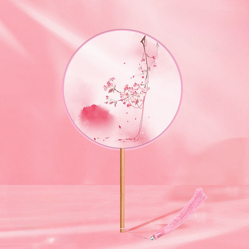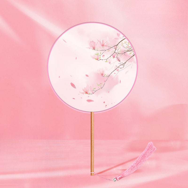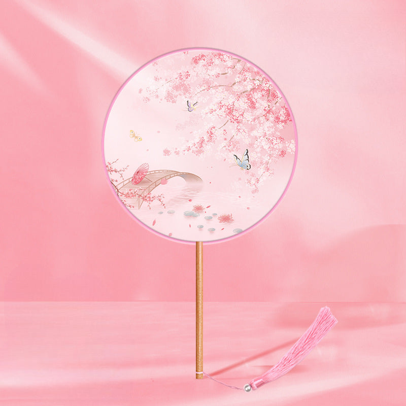 Girls Long Handle Dance Fan Traditional Hanfu Qipao Embroidered Summer Fan
