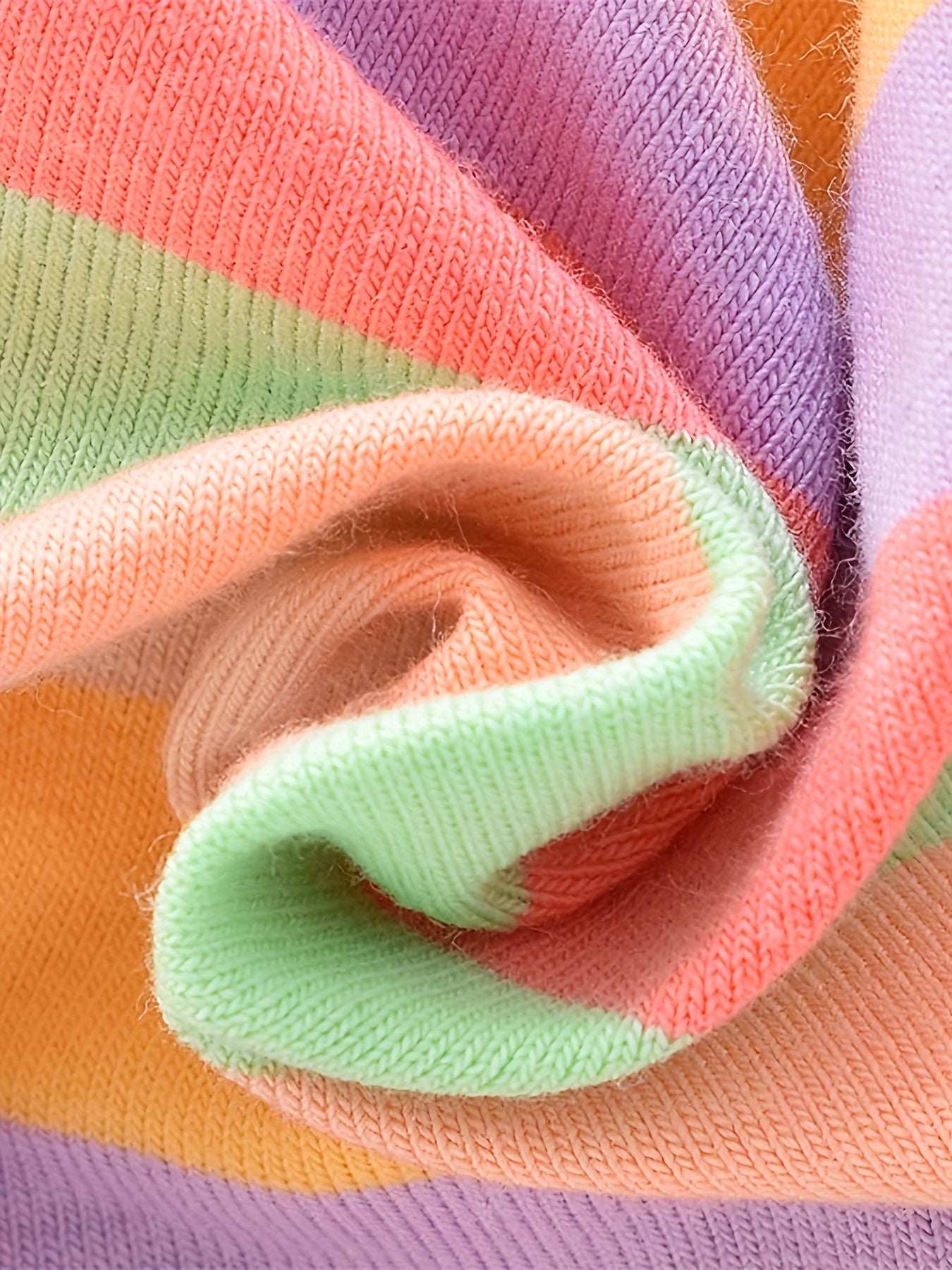Baby Girl Summer Cotton Dress with Striped Short Sleeves Faux Two-Piece Knit Fabric Regular Fit