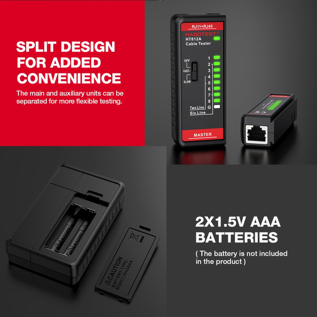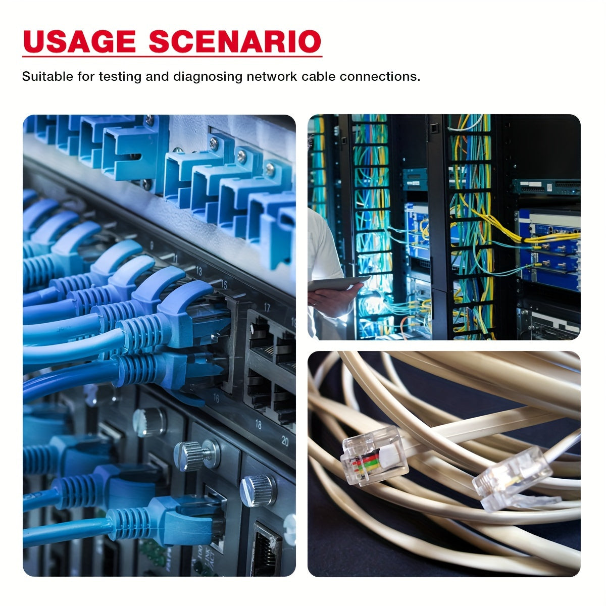 Network Cable Tester for RJ45 RJ11 RJ12 CAT5 CAT5E CAT6 CAT6A Continuity Testing