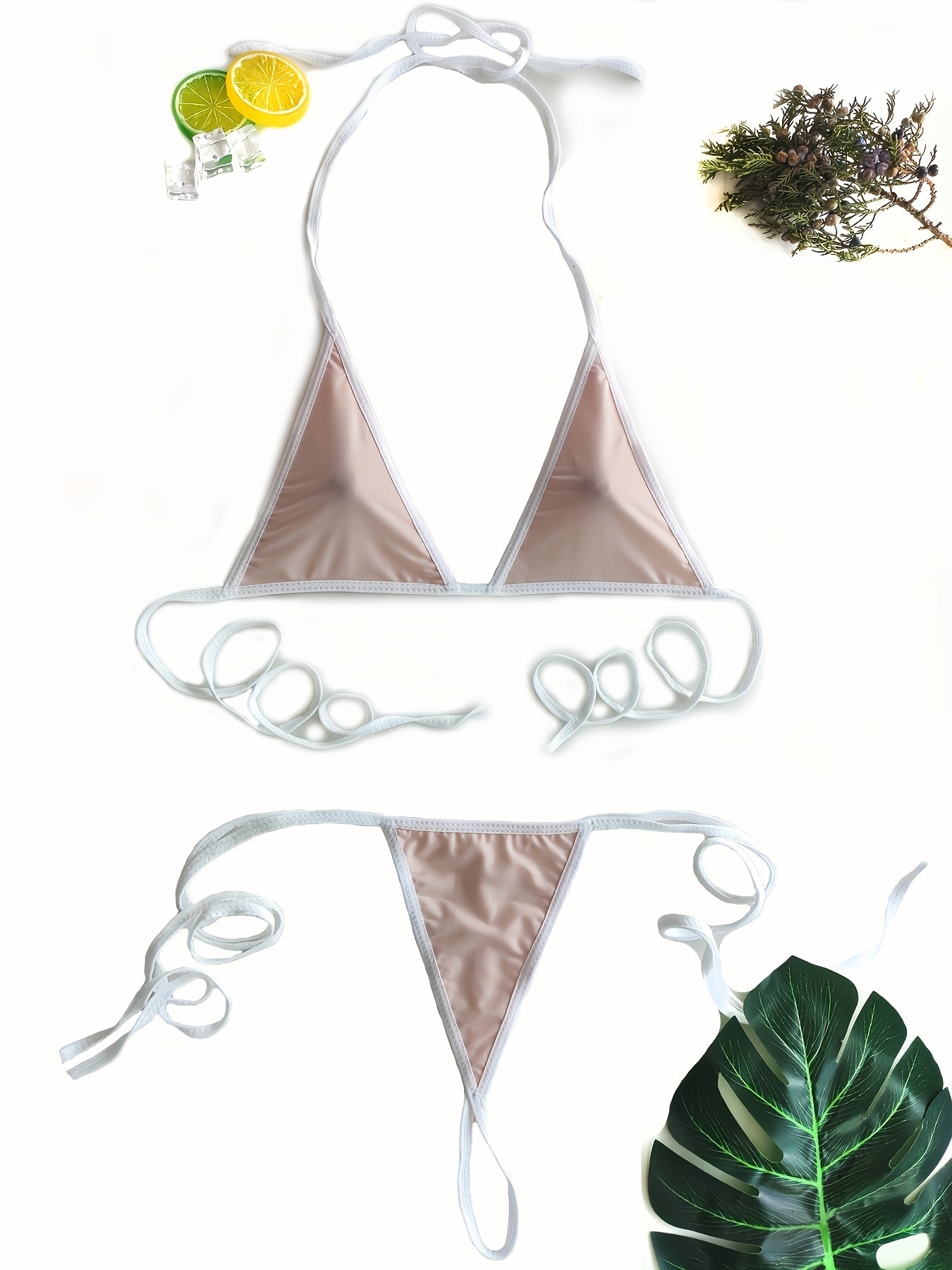Beige Adjustable Triangle Lingerie Set for Women Soft Polyester Casual Sizes S XL