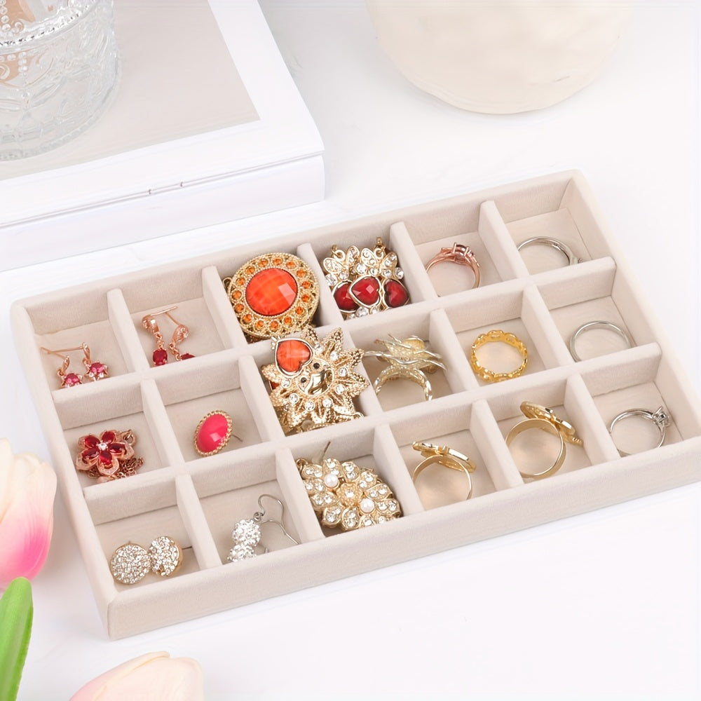 Beige Velvet Jewelry Organizer Tray for Earrings Rings and Accessories Storage