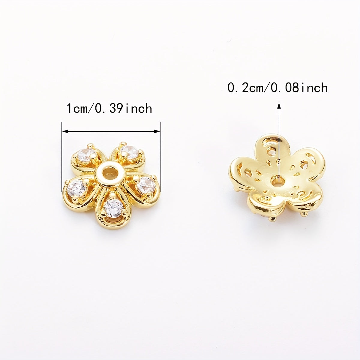 Brass Flower Bead Caps Set of 20 with Synthetic Cubic Zircons 6mm 8mm 10mm