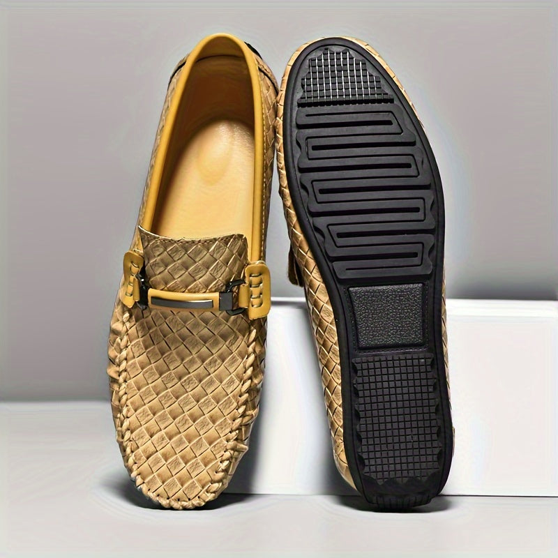 Men's Black Slip-On Loafers Breathable Diamond Pattern Casual Summer Lightweight Rubber Sole