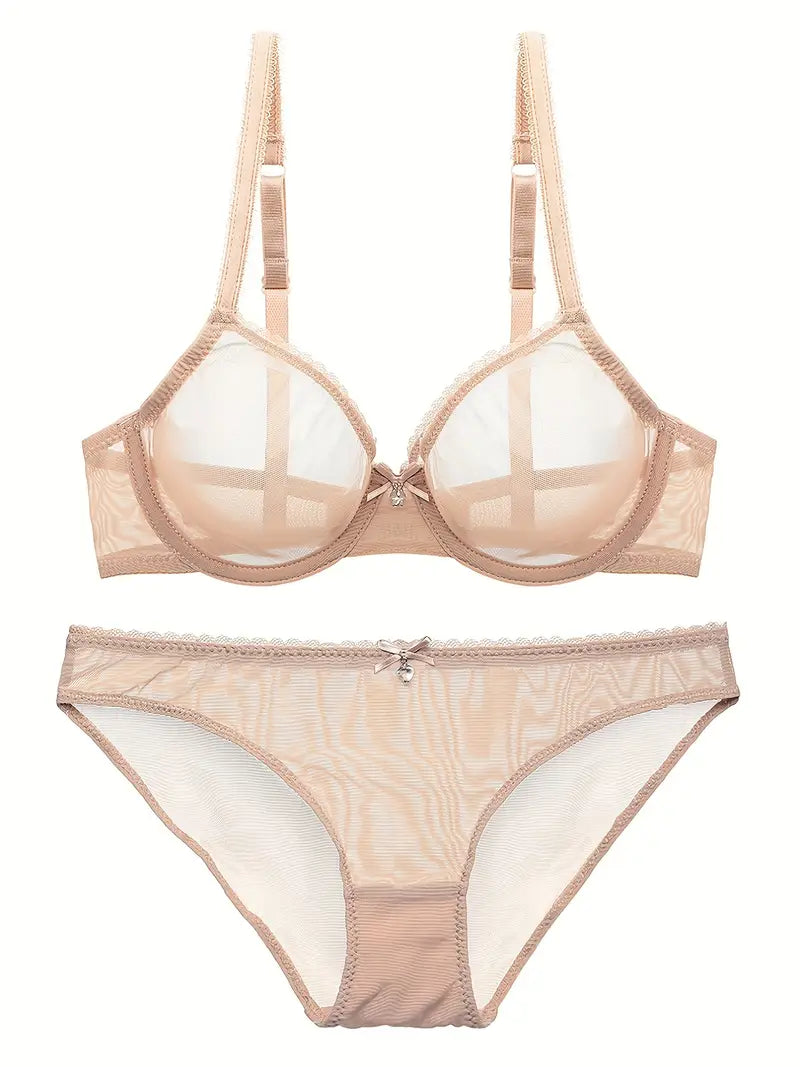 Women's Lingerie Set Mesh Lace Plus Size Nylon Spandex Thin Cups Hand Washable