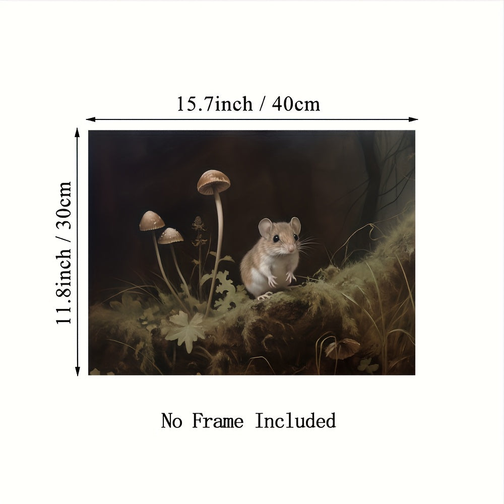 Canvas Wall Art Featuring Mouse and Mushrooms Forest Oil Painting Print 30x40 cm