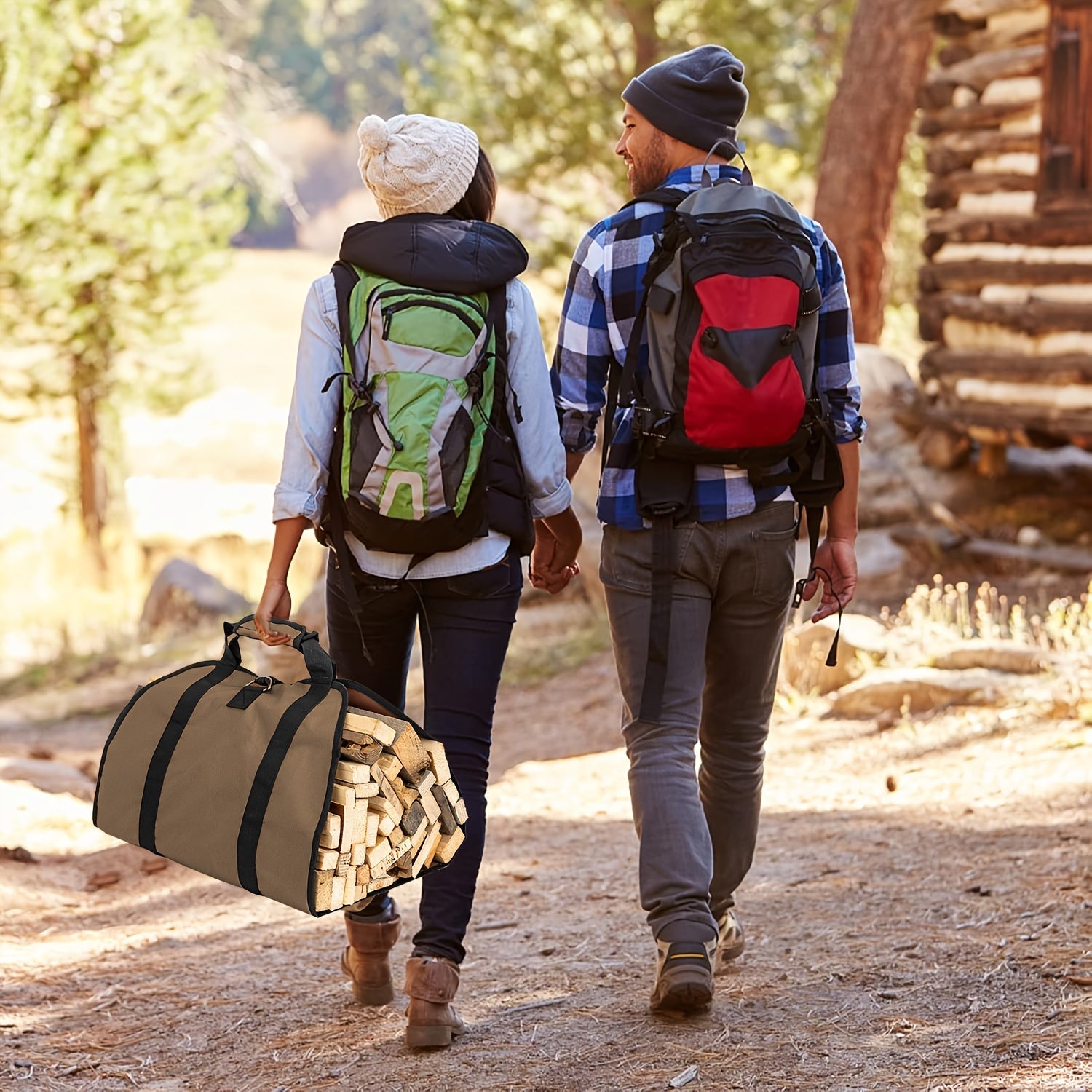 Canvas Log Carrier Bag Firewood Tote with Handles and Security Strap