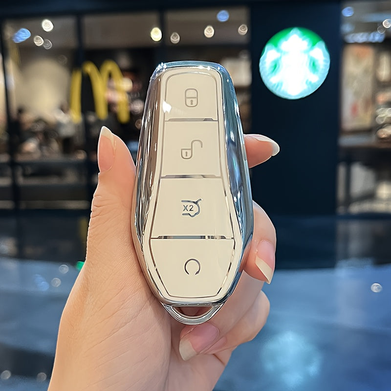 Car Key Cover TPU For EV Remote Control Durable with Woven Keychain Black