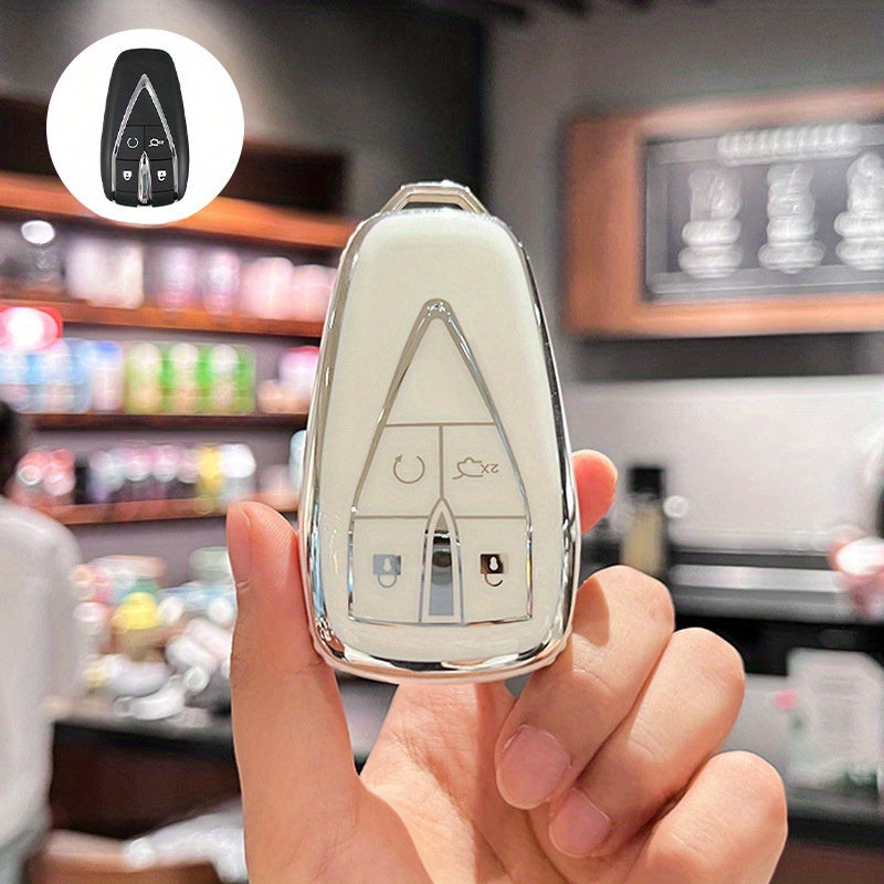 Car Remote Fob Cover TPU Key Case with 4 Buttons and Keychain Protector