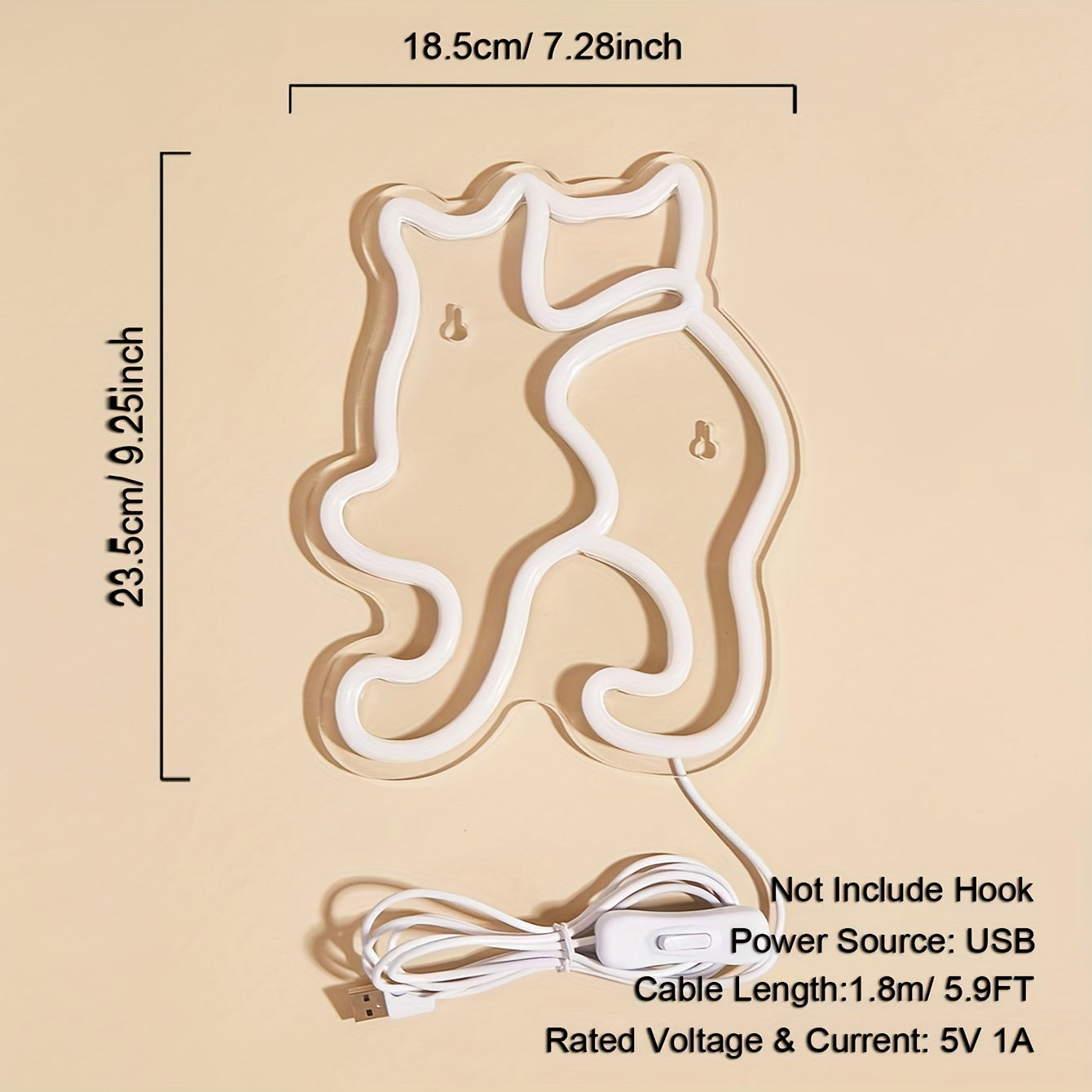 Cat Shaped LED Neon Sign USB Powered for Bedroom Holiday Party Decoration
