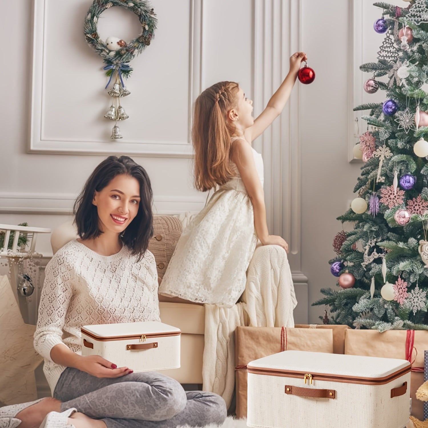 Champagne Fabric Storage Box with Lid Zipper Organizer for Clothes and Blankets Under Bed Dustproof Portable