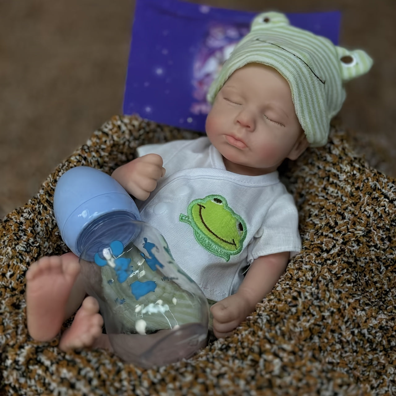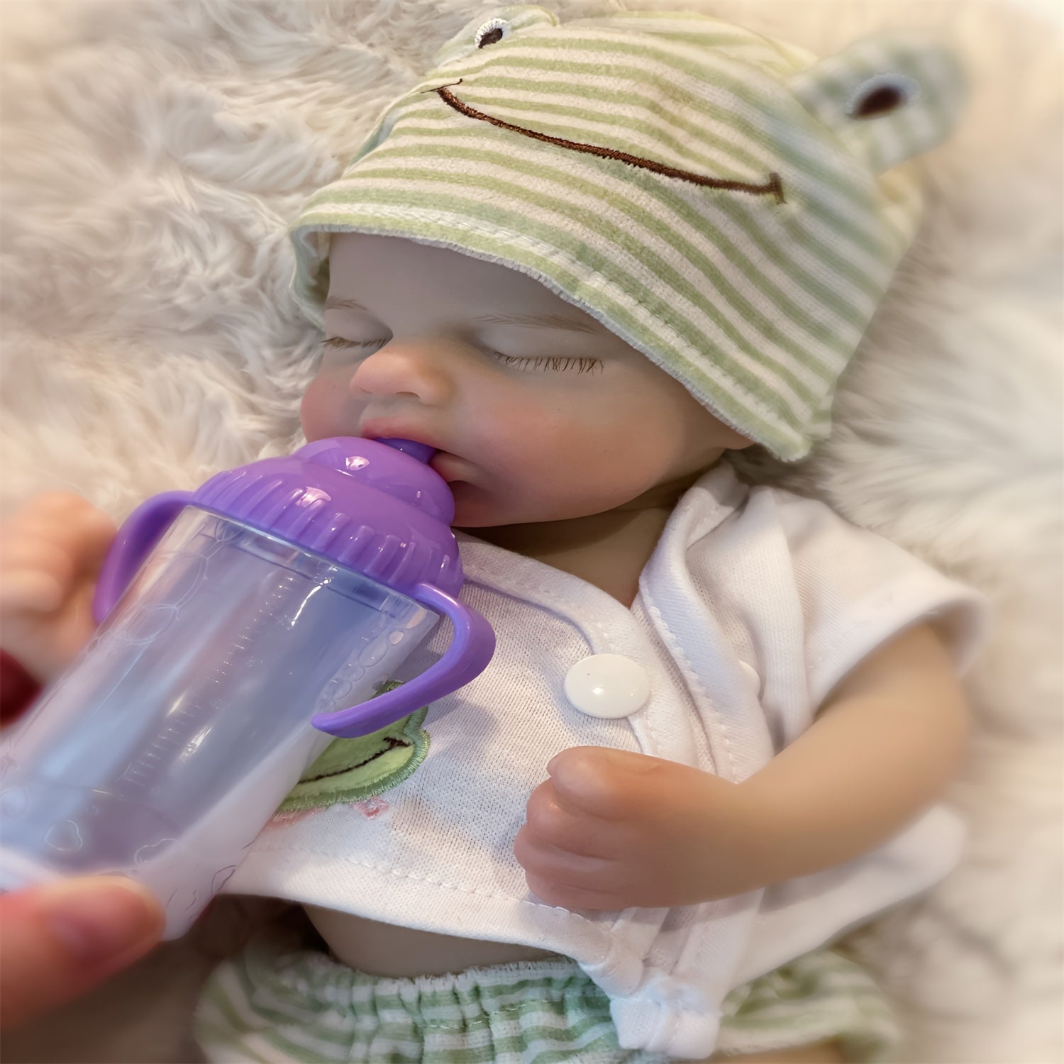 Reborn Doll 33cm Silicone Waterproof Openable Mouth Feeding Accessory Pink Outfit for Kids