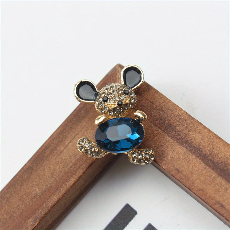 Mini Mouse Brooch Pin Adorable Bear Rhinestone Detail for Scarves and Clothing