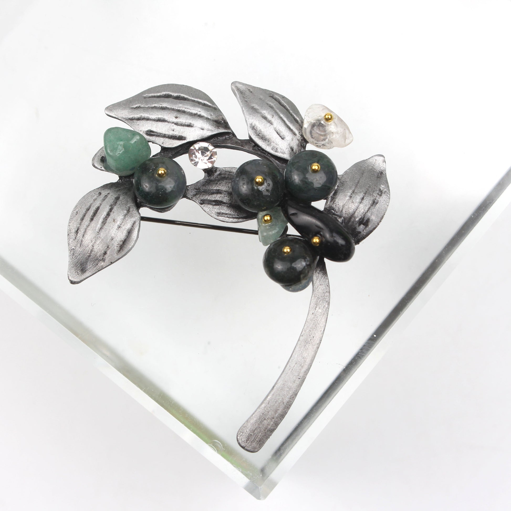 Enamel Leaf Brooch Silver Tone Elegant Plant Design Gift for Women