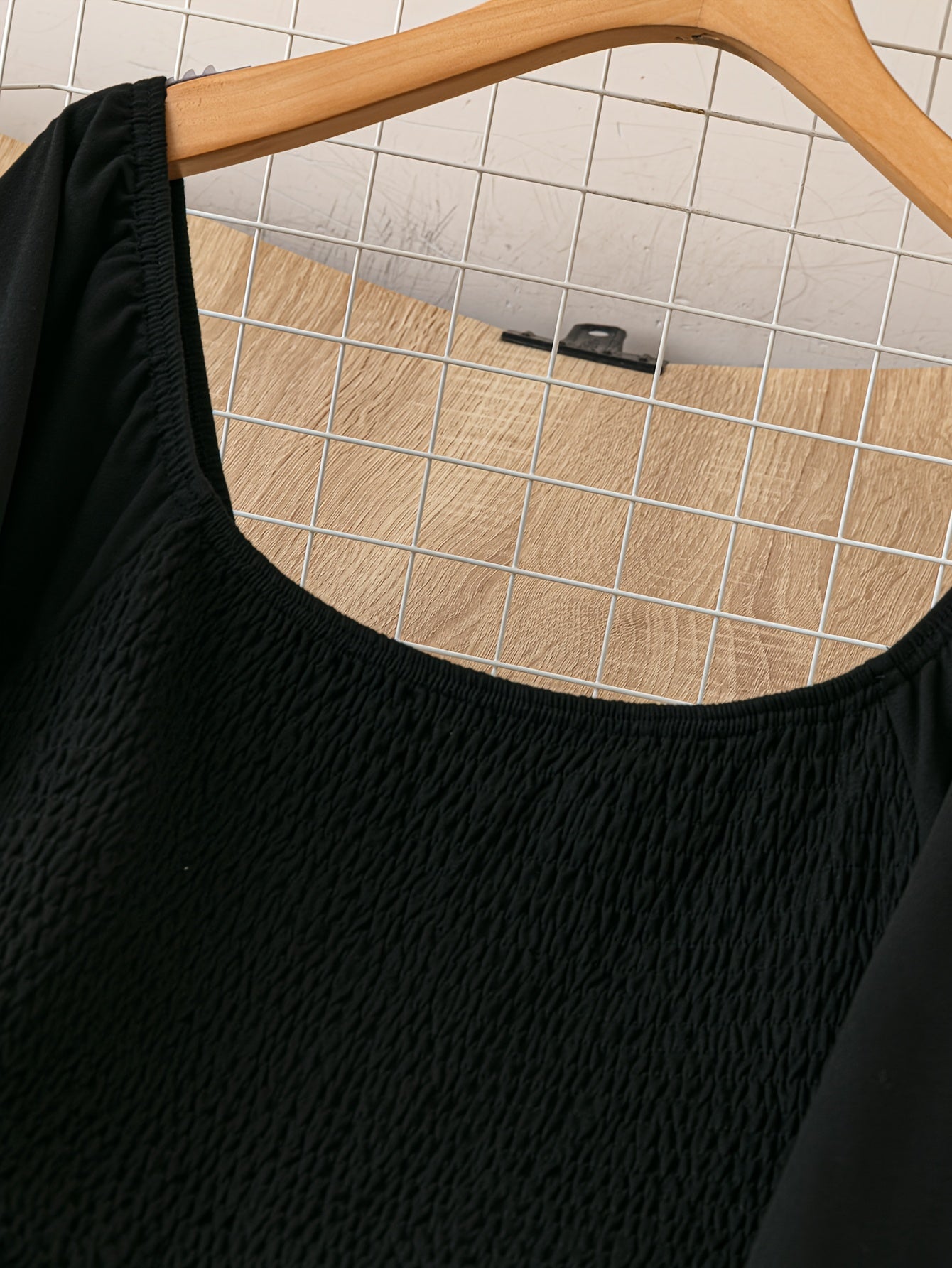 Women's Black Geometric Pattern Square Neck Off-Shoulder Jumpsuit with Stretch Polyester