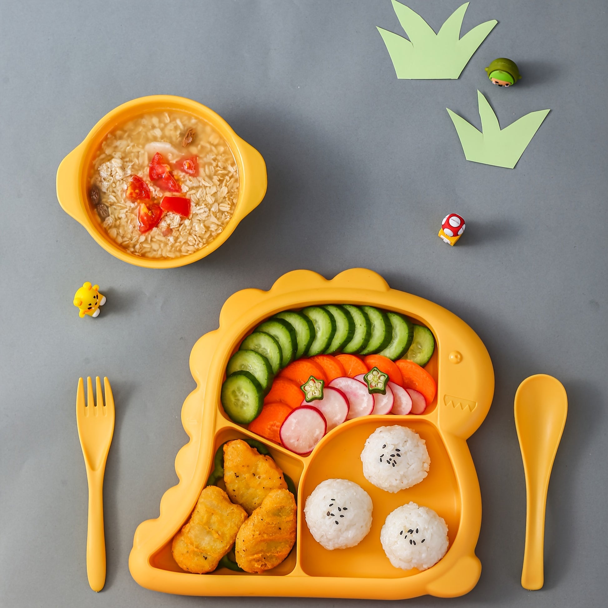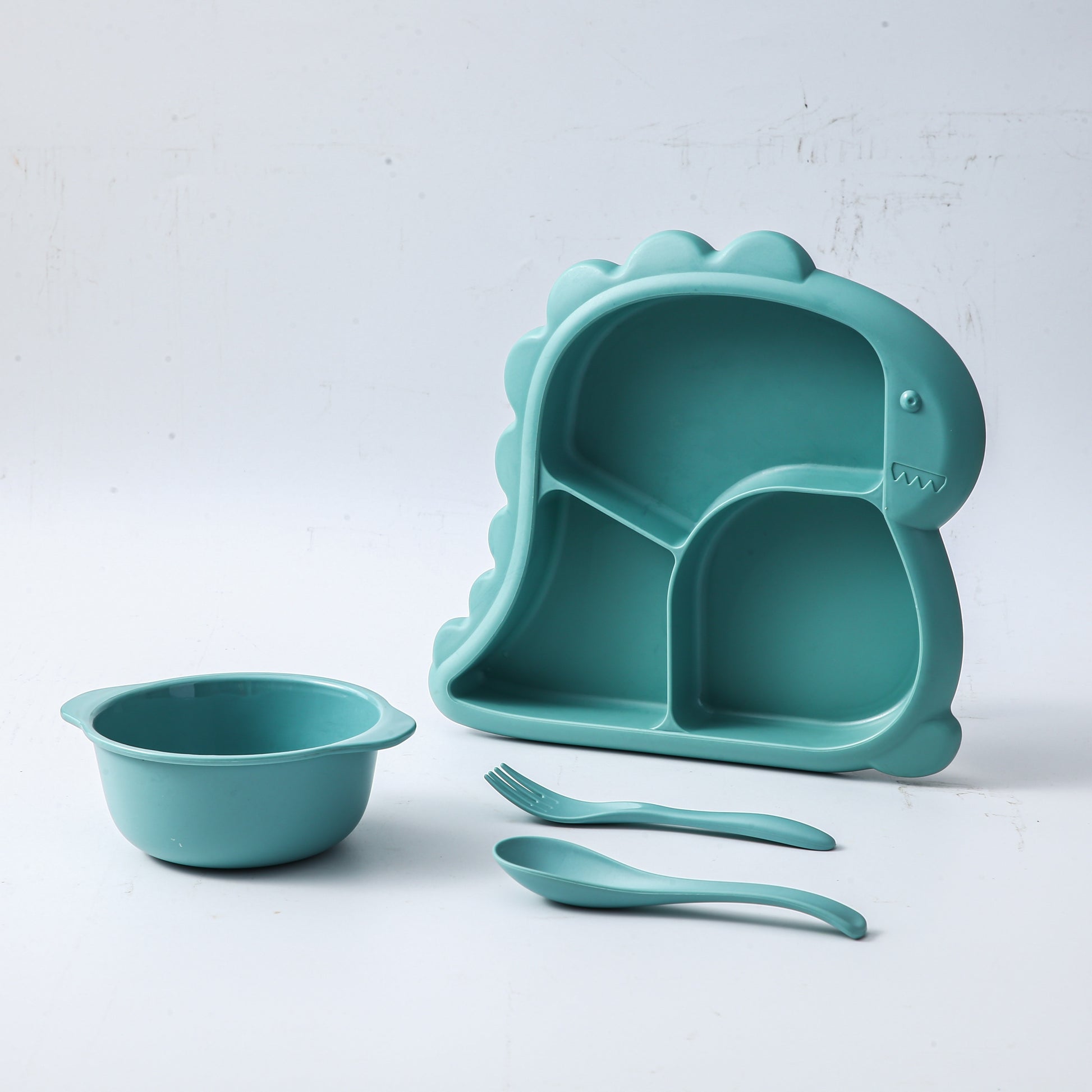 Children's Dinosaur-Shaped BPA-Free Plastic Dinnerware Set with Plate Bowl Fork Spoon