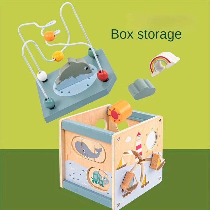 Children's Ocean Puzzle Bead Box Activity Cube Toy for Babies Early Learning Hands-On Development