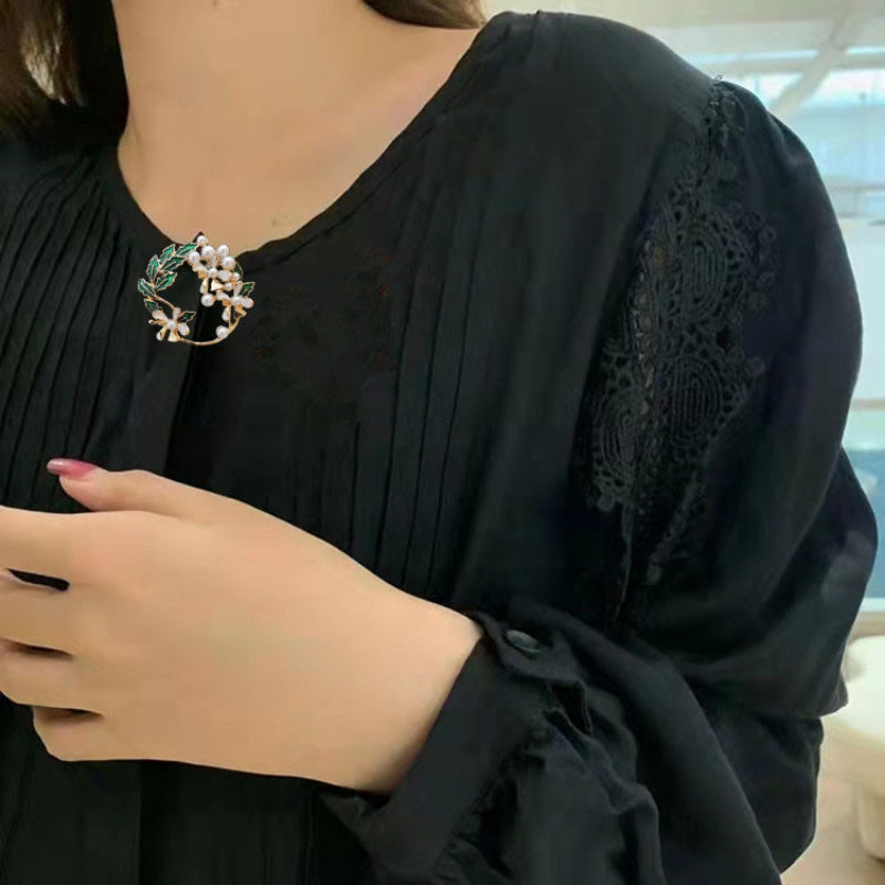 Women’s Christmas Brooch Set with Gardenia Pearl Design, Retro Style, 3 Pieces