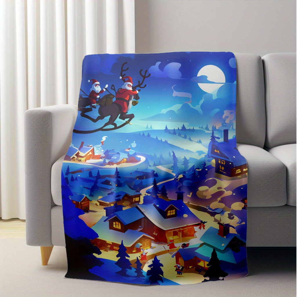 Night Sky and Snowy Village Flannel Plush Blanket Lightweight Throw for Home Office Travel