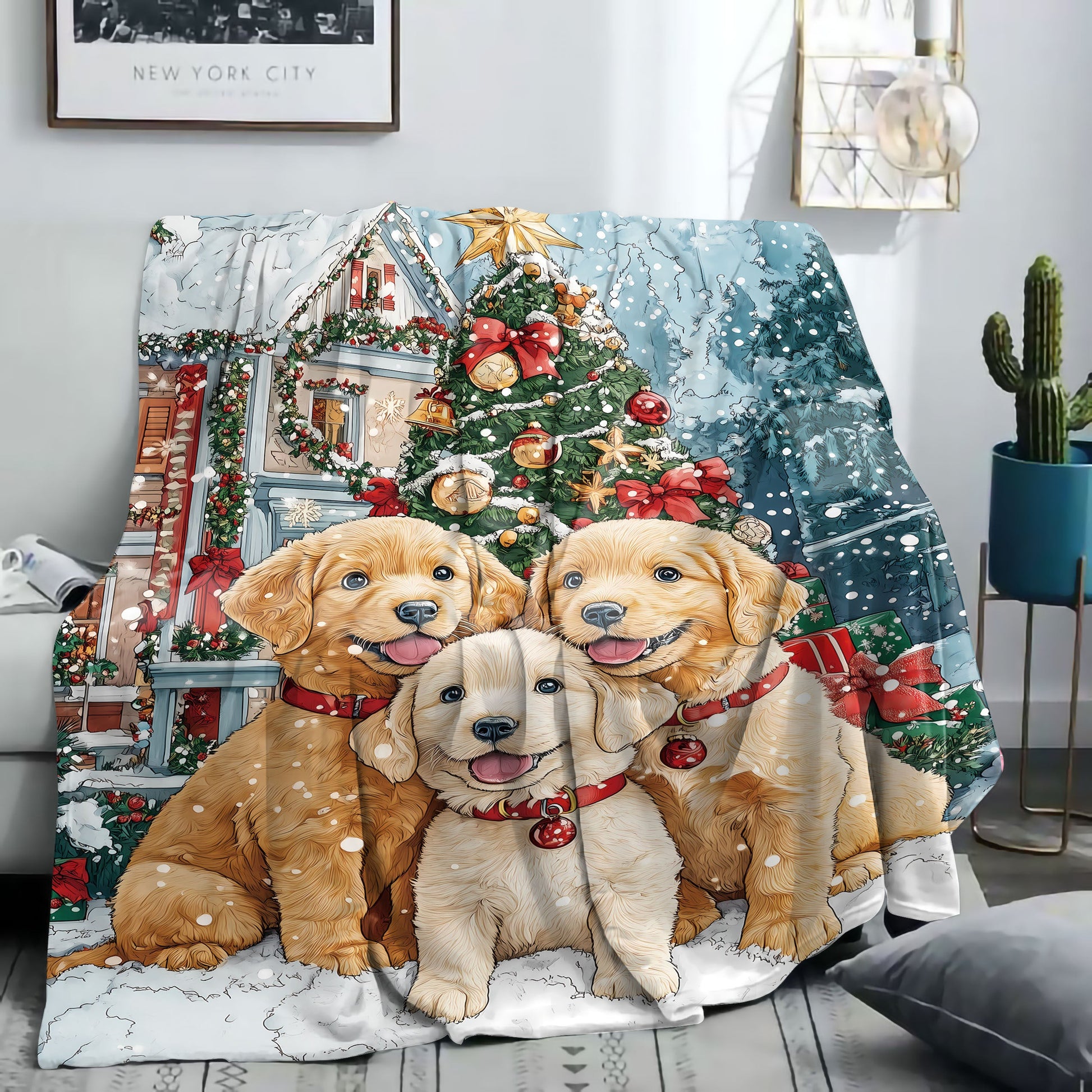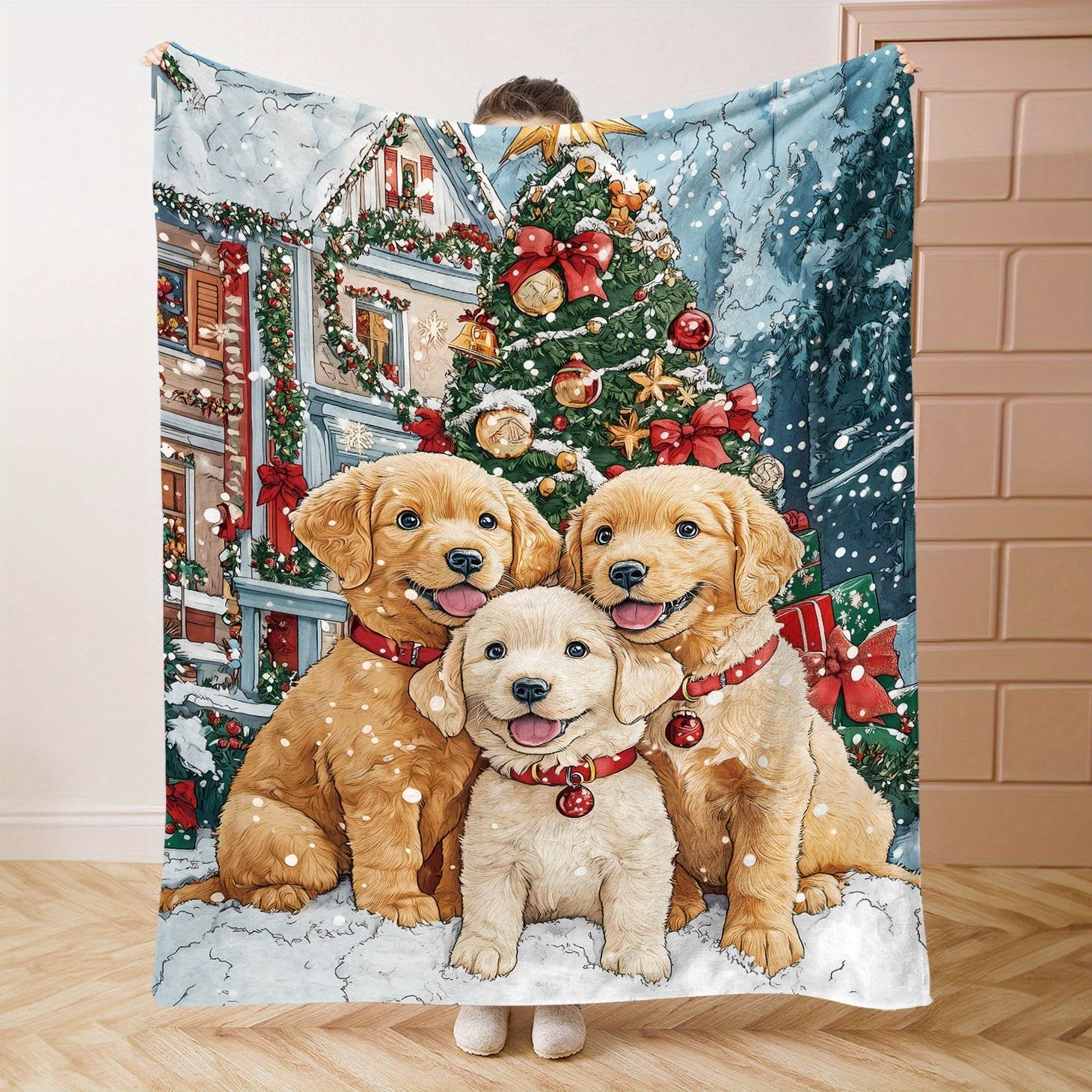 Christmas Puppy Flannel Throw Blanket Soft Polyester Knit All-Season Cozy Bed Sofa Bed Decor
