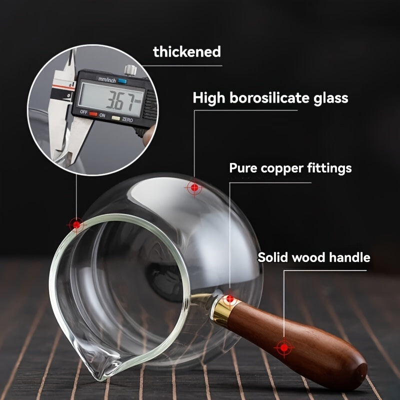 Clear Glass Espresso Pot with Wooden Handle for Coffee and Milk Heating