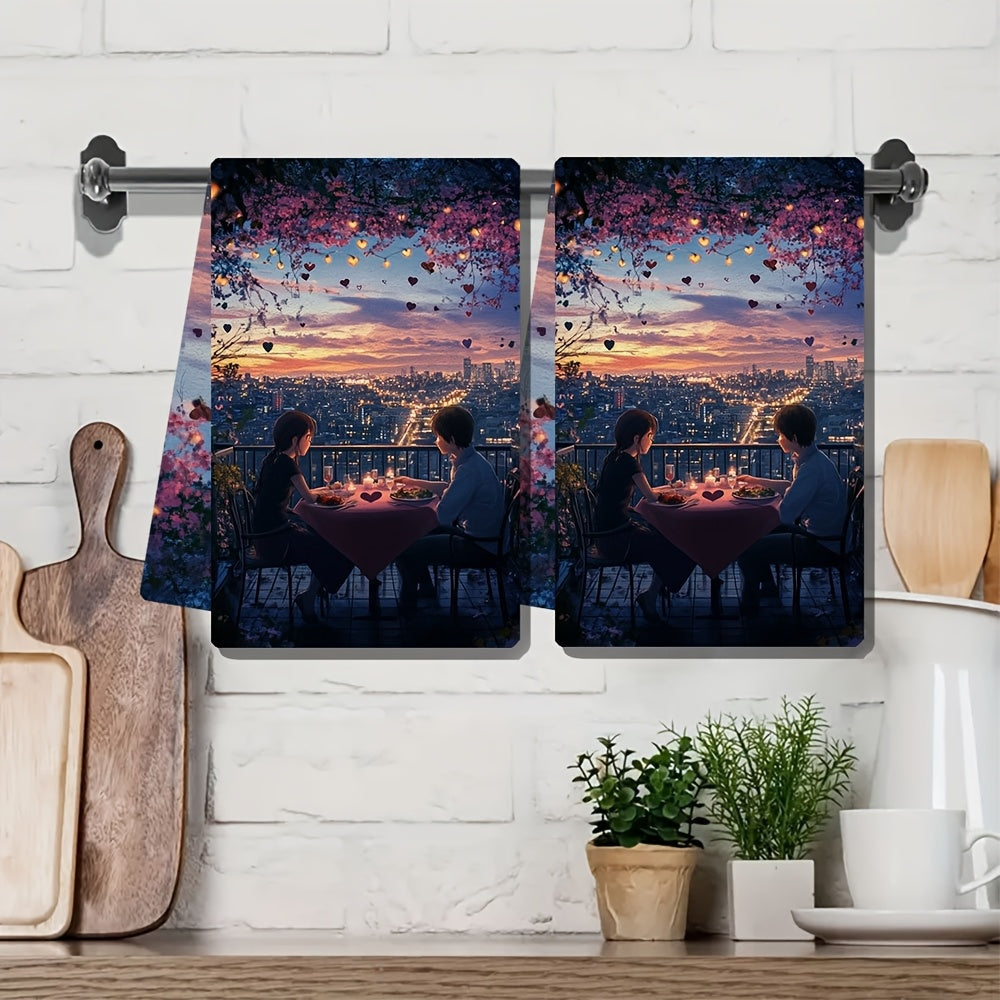 Coastal-Theme 2-Pack Polyester Dish Towels Ultra Soft High Absorbency 40x60 cm