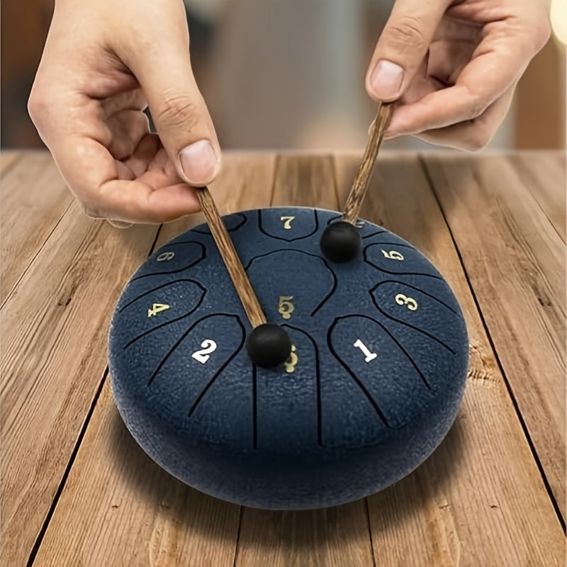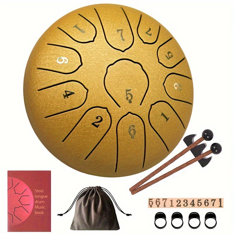 6-Inch 11-Tone Steel Tongue Drum Kit with Bag Mallets Music Book for Meditation Yoga Camping