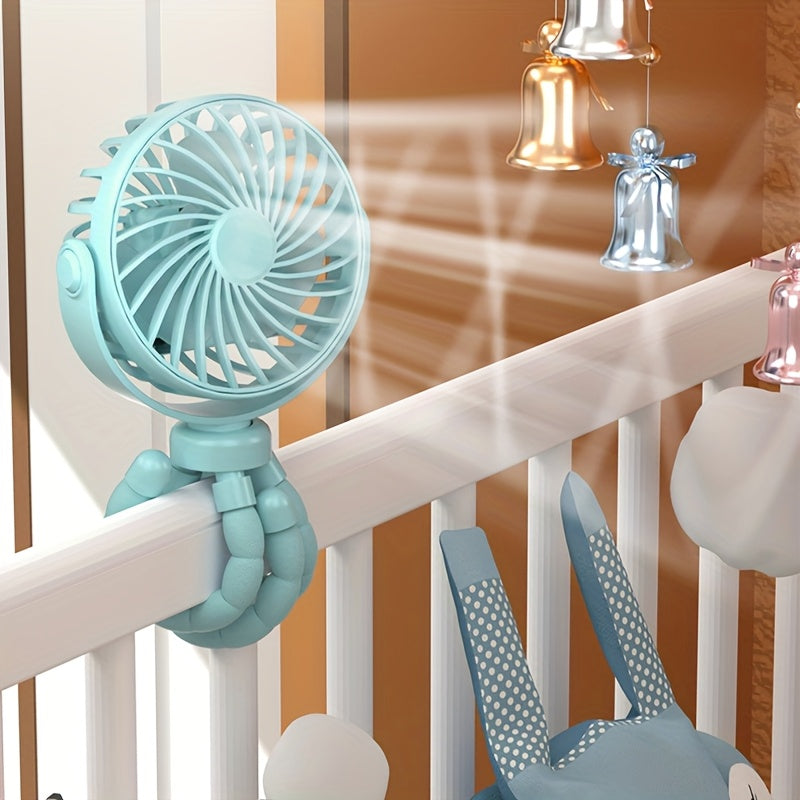 Portable Mini USB Fan with Night Light Black Foldable Rechargeable Adjustable Stand