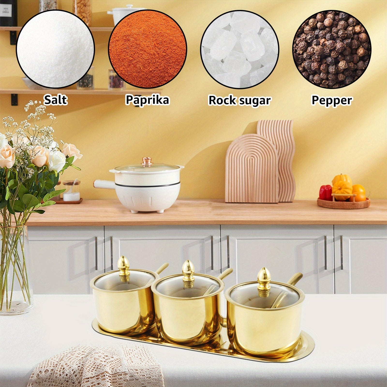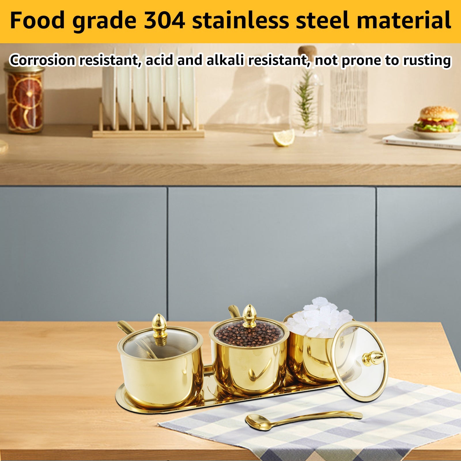 Condiment Jar Set with Glass Lids and Spoons, 3-Compartment Spice Storage