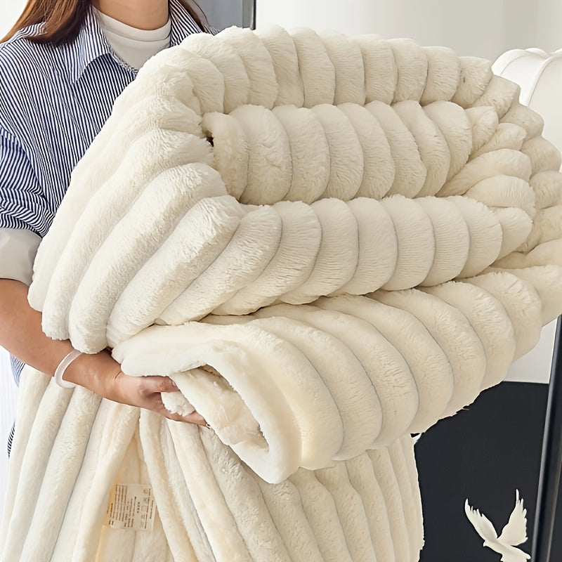 Velvet Throw Blanket with Faux Rabbit Fur for Bedroom Living Room All Seasons