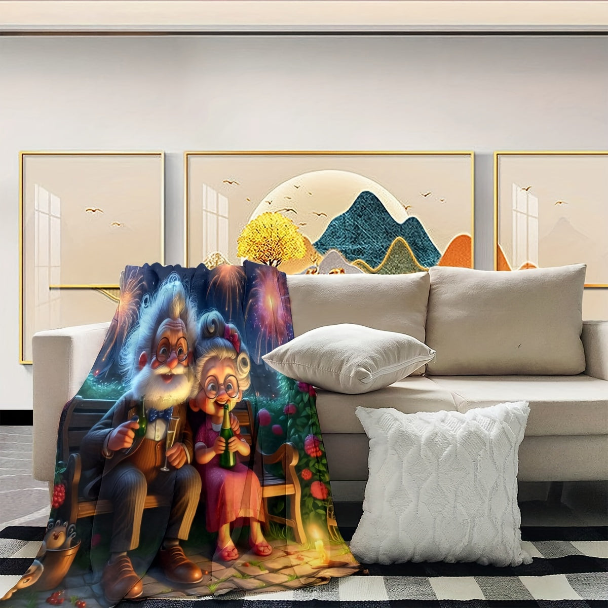 Grandparents Flannel Blanket New Year's Print Ultra-Soft Plush Fleece Gift