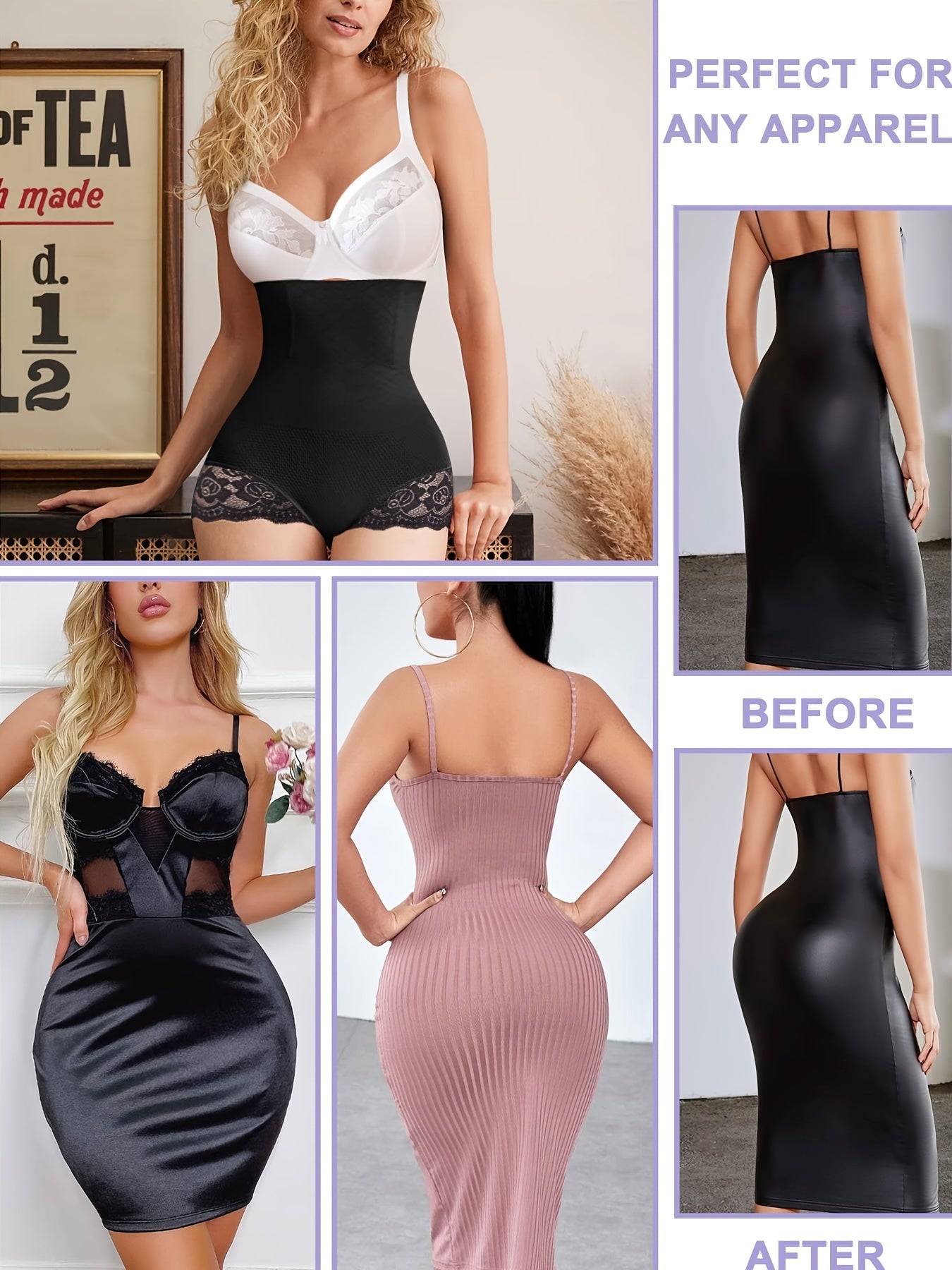 Women’s High Waist Tummy Control Lace Shaping Panties Solid Color