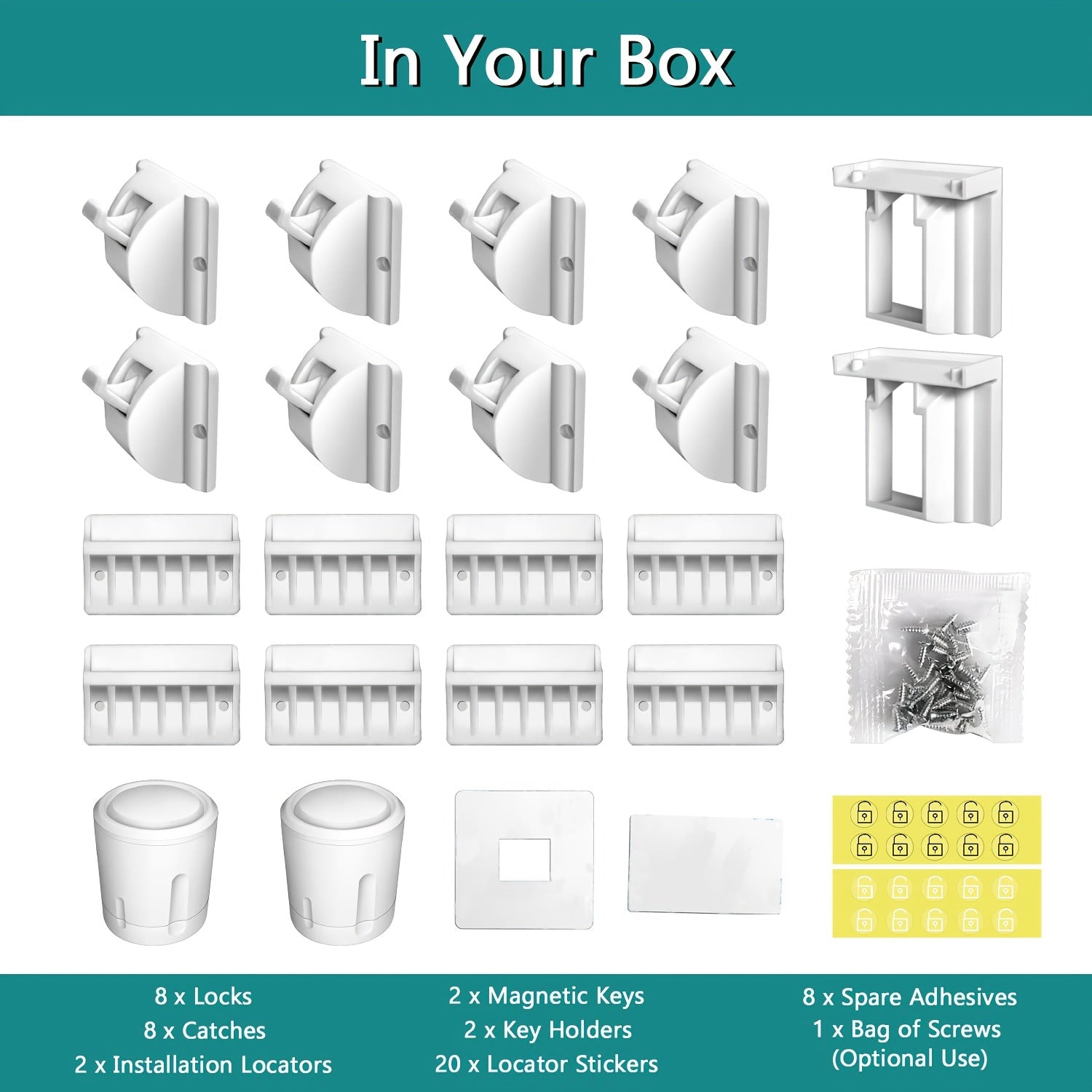 Magnetic Childproof Cabinet Locks Set of 8 No Tools Needed Safe Plastic