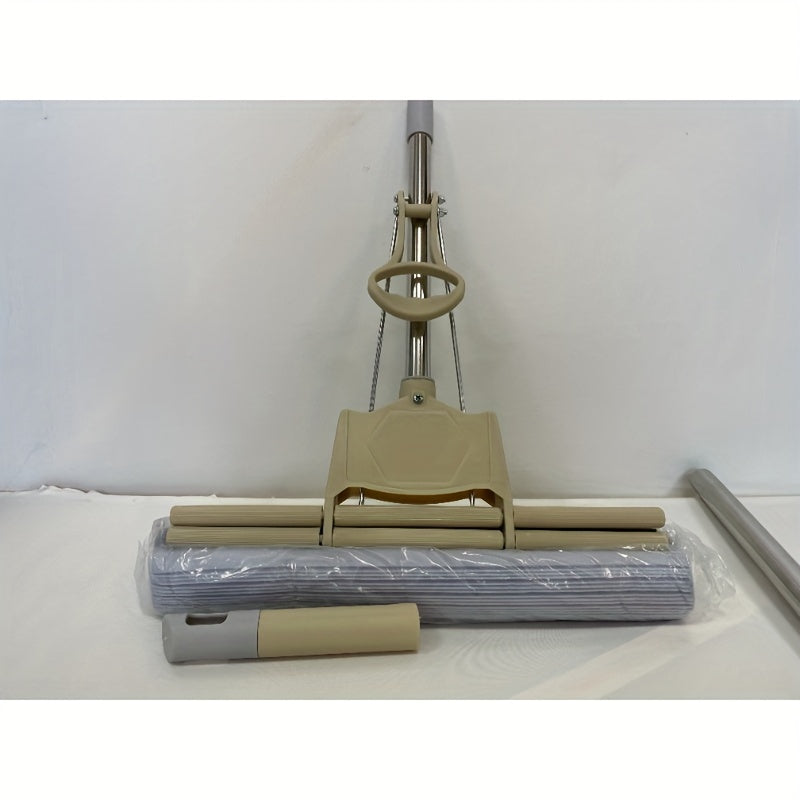 Convenient Sponge Mop on Wheels with Rubber Head for Easy Absorption