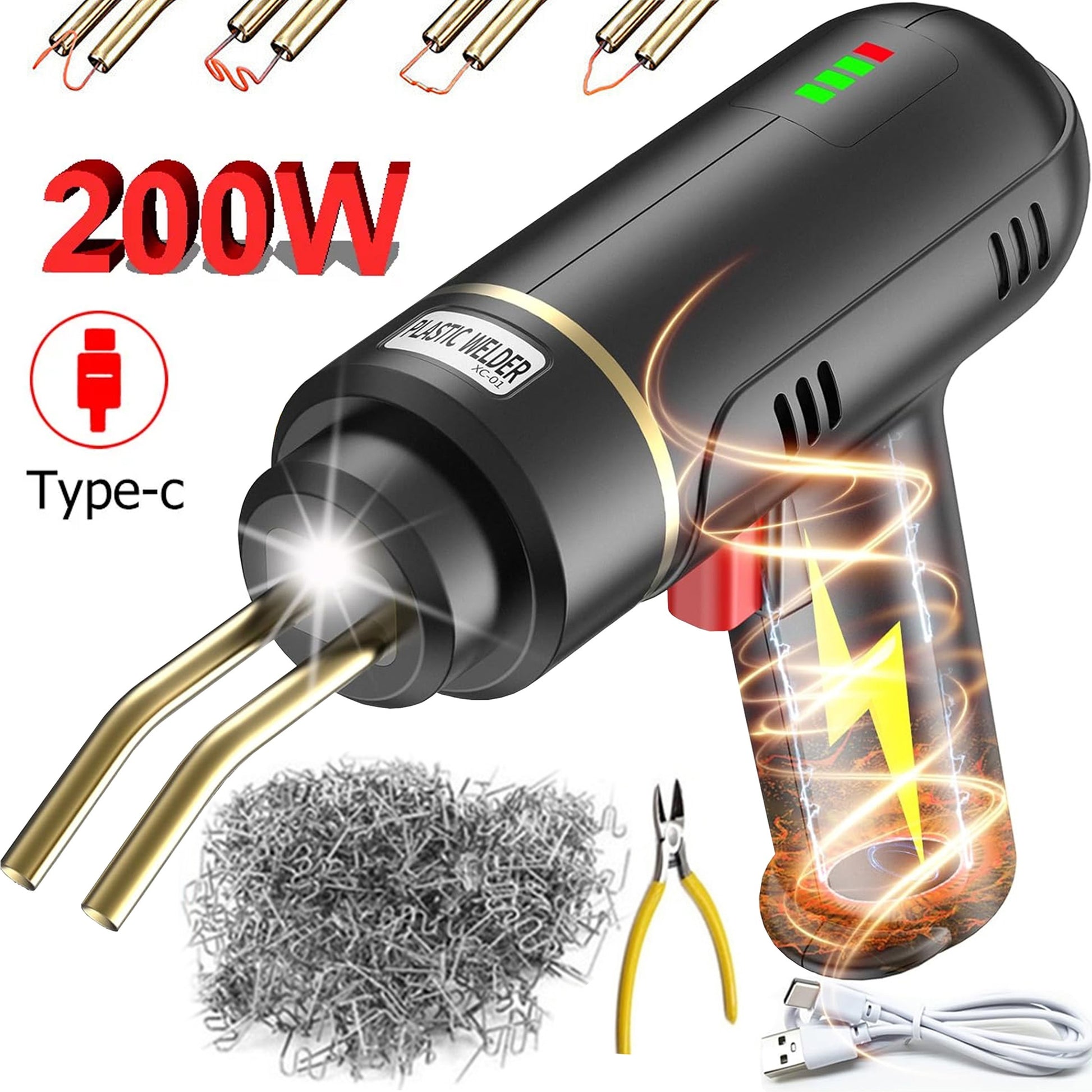 Cordless Plastic Welding Gun 200W with 5000mAh Battery Hot Stapler Repair Kit