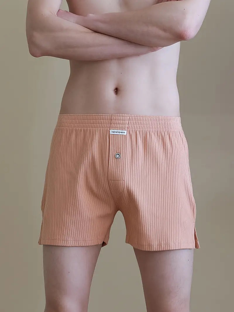 Men's Cotton Boxer Shorts Breathable Loose Fit Button Fly Sleepwear Home Wear