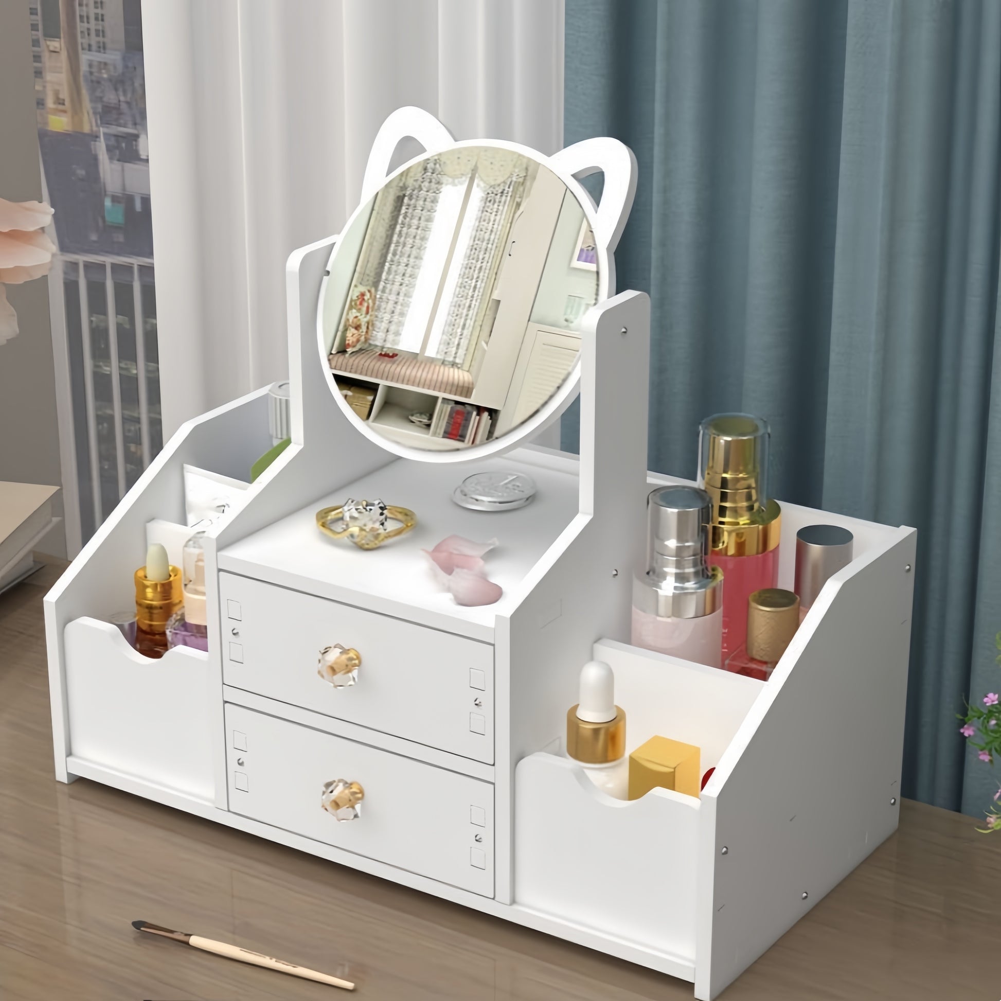 Countertop Makeup Organizer with Mirror Drawer Floral Design for Skincare and Phone Storage