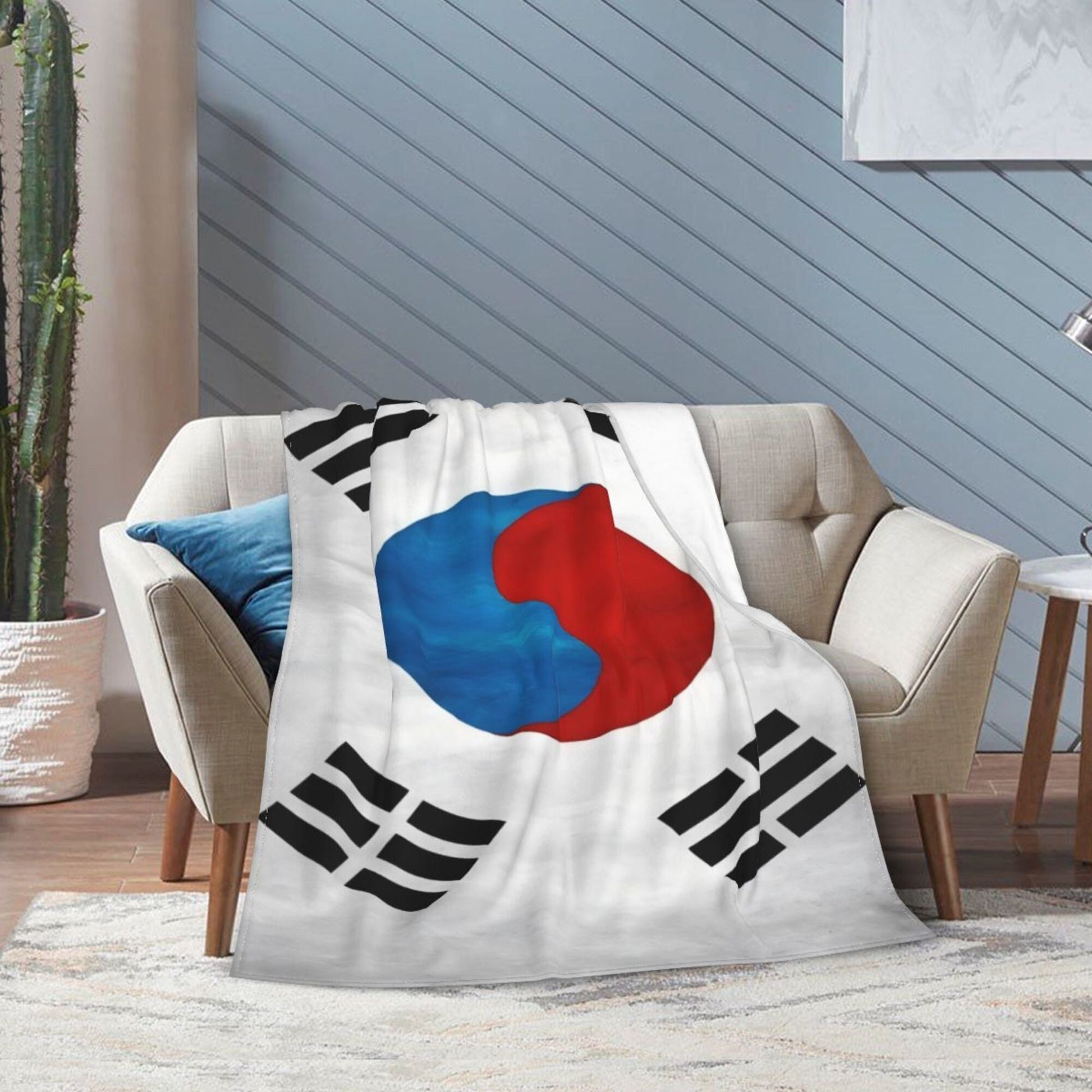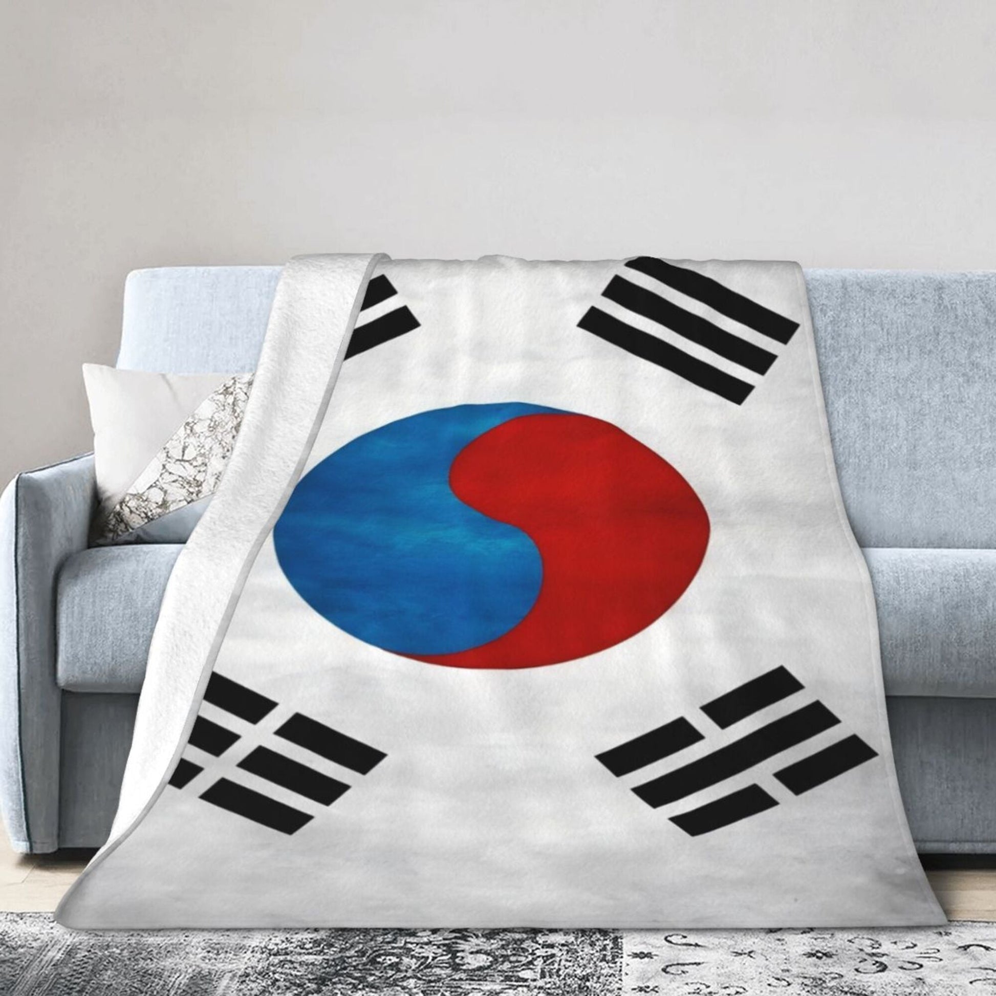 Lightweight Flannel Fleece Throw Blanket South Korea Flag Digital Print Soft for Sofa Bed Camping