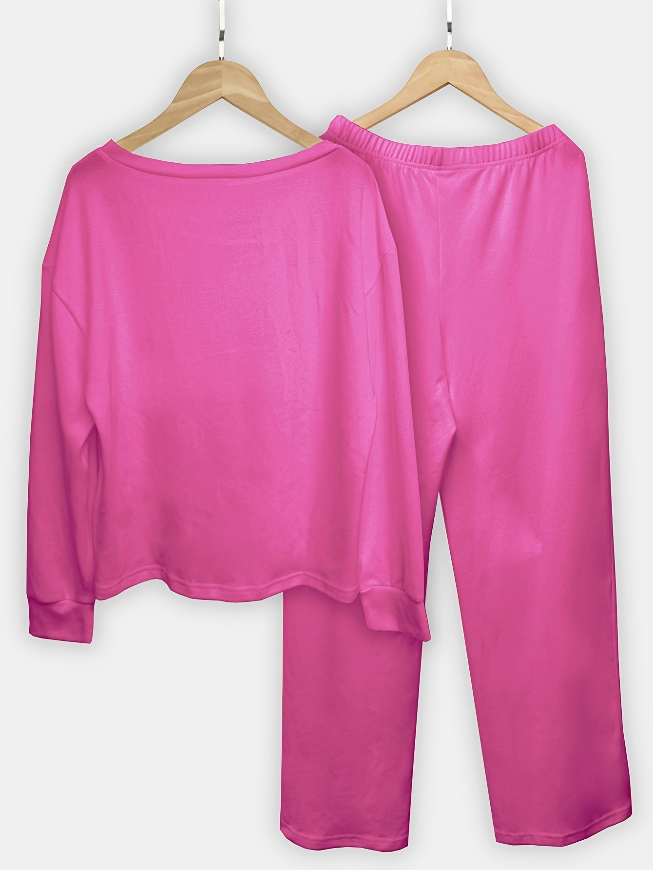 Women's Brushed Fabric Loungewear Set in Solid Color with Crew Neck and Long Pants for Fall Winter