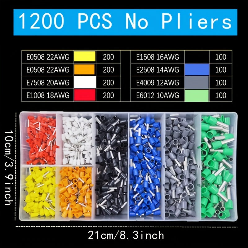 Crimping Kit with 300-1200 Tubular Crimp Terminals and Pliers for Electrical Connectors