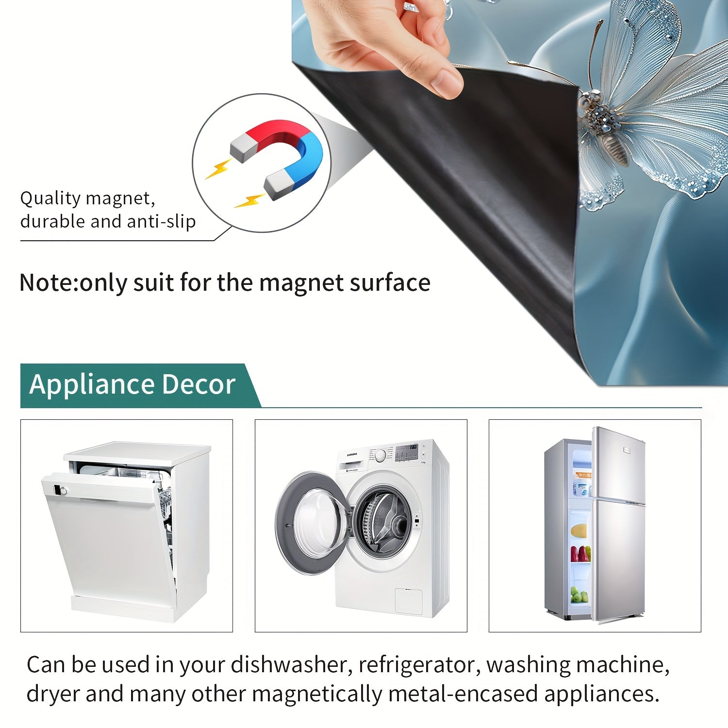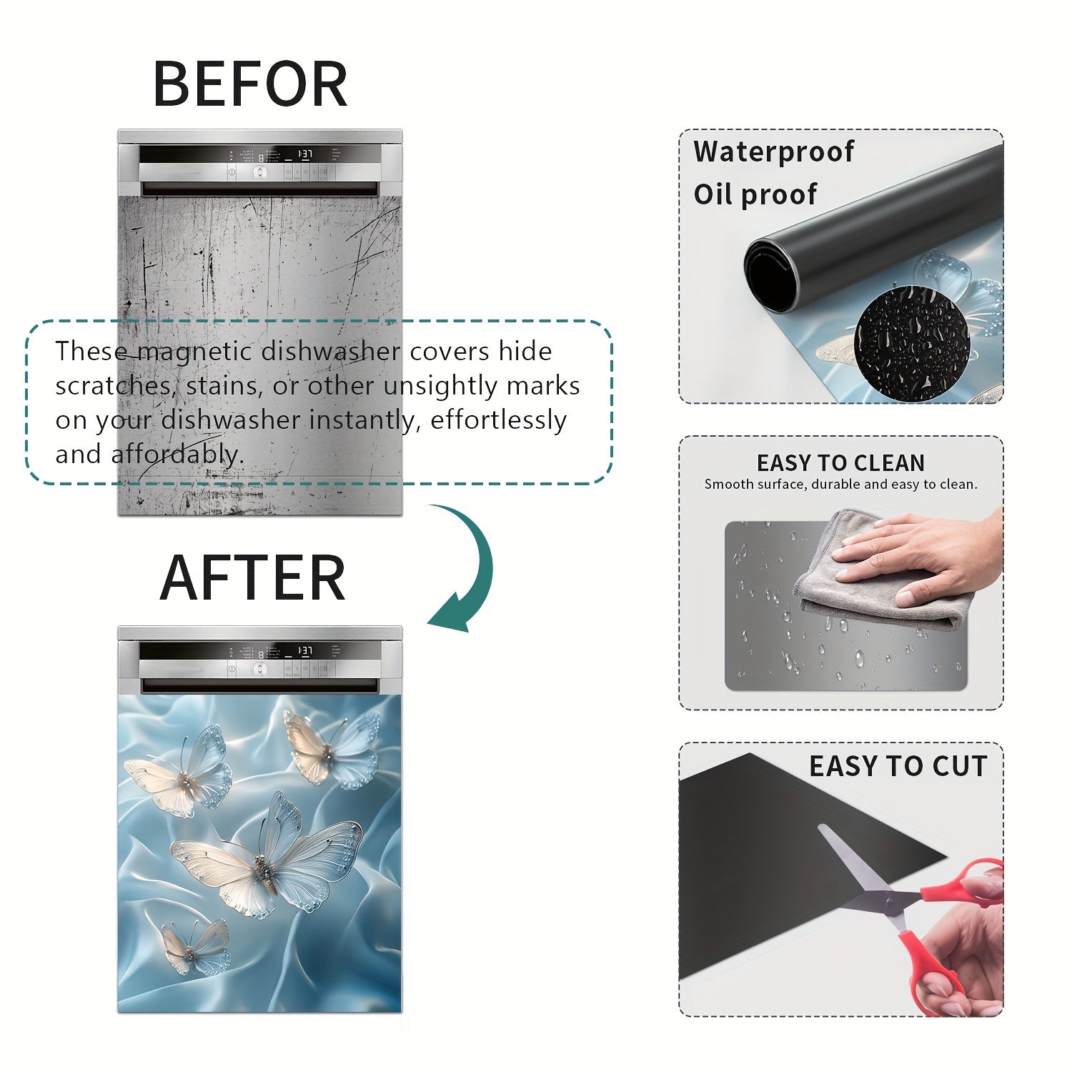 Butterfly Flower Magnetic Dishwasher Door Cover Sticker Waterproof Reusable PVC Kitchen Decor 58x65 cm