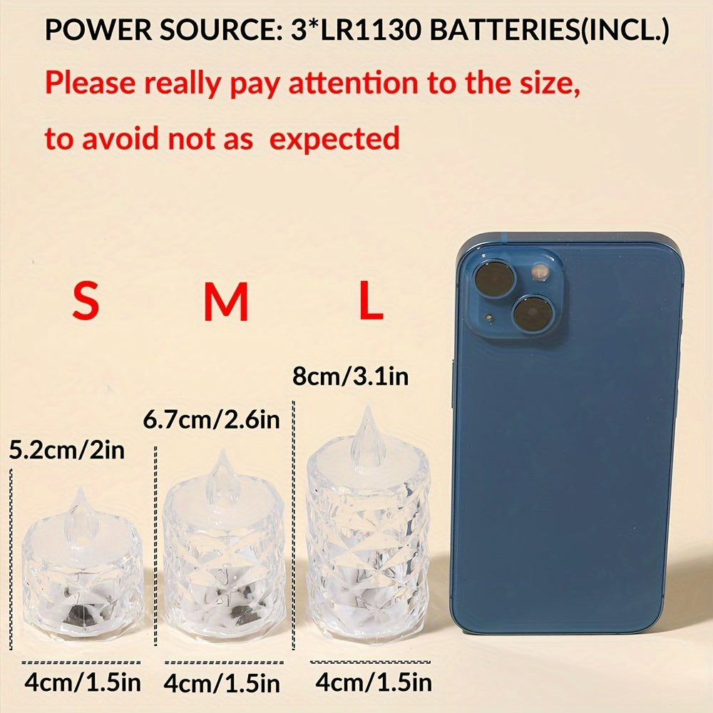 Set of 3 Crystal Pattern LED Flameless Tea Candle Lights for Home Decor Weddings Parties and Festivals